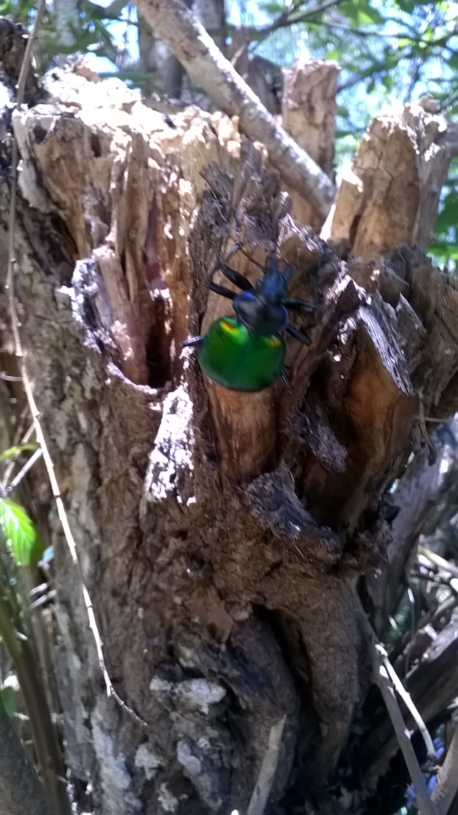 Chiedo scusa per le foto ma le ho dovute fare velocemente e di nascosto..sono un capo scout ed ero con i bambini in piena campagna, in un'area con un ruscello ben lontana dal paese. L'ambiente è di macchia mediterranea..abbiamo poggiato gli zaini a un eucaliptus che aveva diversi fori del diametro di poco meno di 1cm (non so se c'entri qualcosa) ed era coperto da questi coleotteri, di circa 2 cm..i bambini erano incuriositi ma non potevo far foto senza disturbare l'attività..in un secondo momento ho trovato questo solitario, ma prevalentemente preferivano gli eucaliptus..quindi non sgridatemi per la foto e pensate a 15bambini che volevano sapere il nome di questi ospiti!