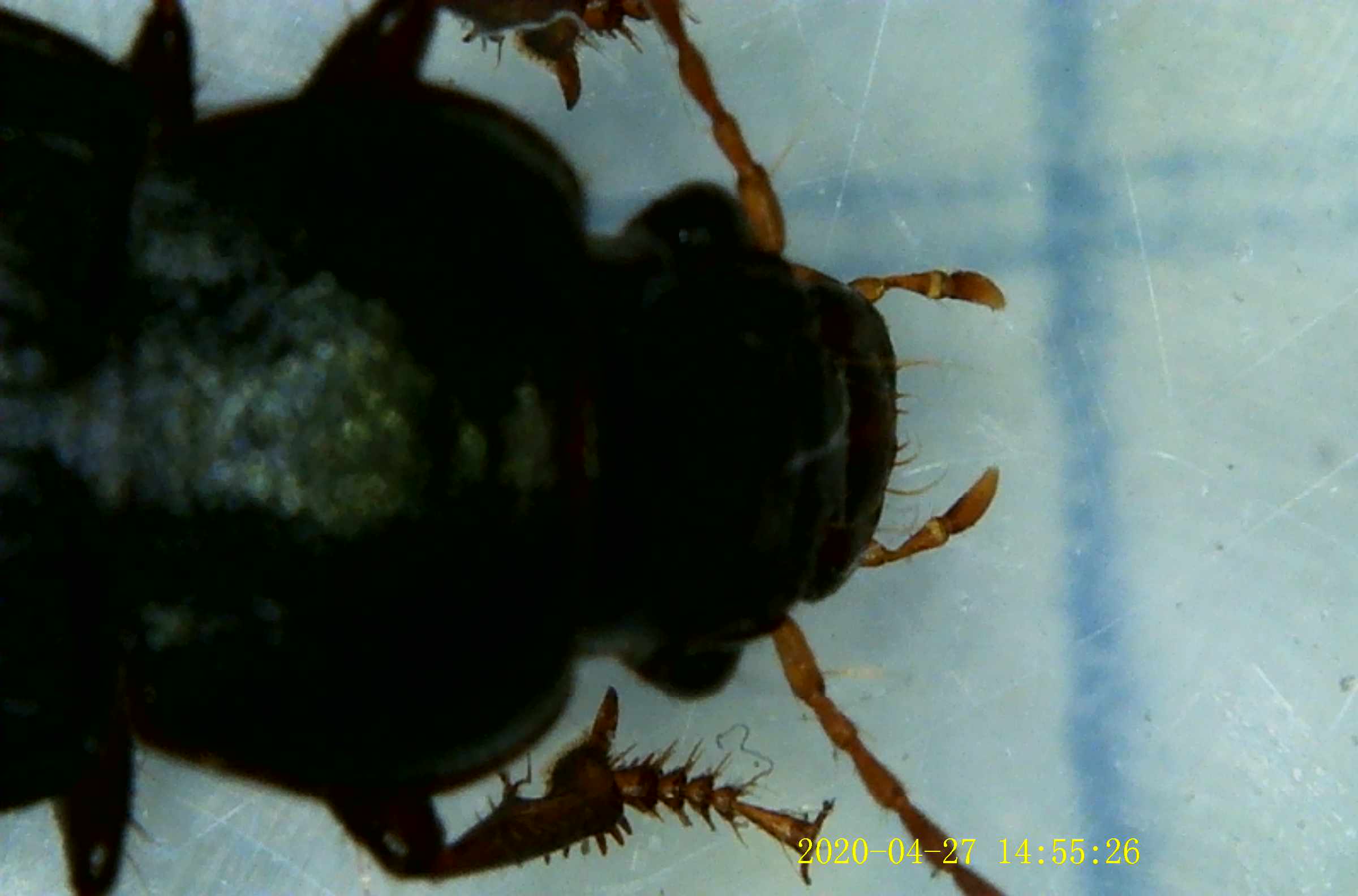 Questo coleottero lo ho inizialmente trovato l'altro giorno nel mio formicaio in terra delle mie Messor, mentre banchettava su un pezzo di mela. Stamattina lo ho trovato che rosicchiava un cadavere di formica sotto un sasso. Non ho idea ovviamente se sia andato a "caccia" o semplicemente abbia consumanto un'operaia già morta, quindi lo ho isolato. Recentemente, l'unico terreno che ho aggiunto è stato del terriccio commerciale, ed è stato circa un paio di mesi fa. Ricordo però che, circa un anno fa, mentre ponevo il terreno (proveniente dal mio giardino) all'interno del formicaio avevo visto di sfuggita un coleottero nasondercisi. Non so se possano vivere così a lungo, ma dubito che sia sopravvissuto, anche perchè tengo molto secco il terreno (ho il timore che i semi delle formiche germoglino).