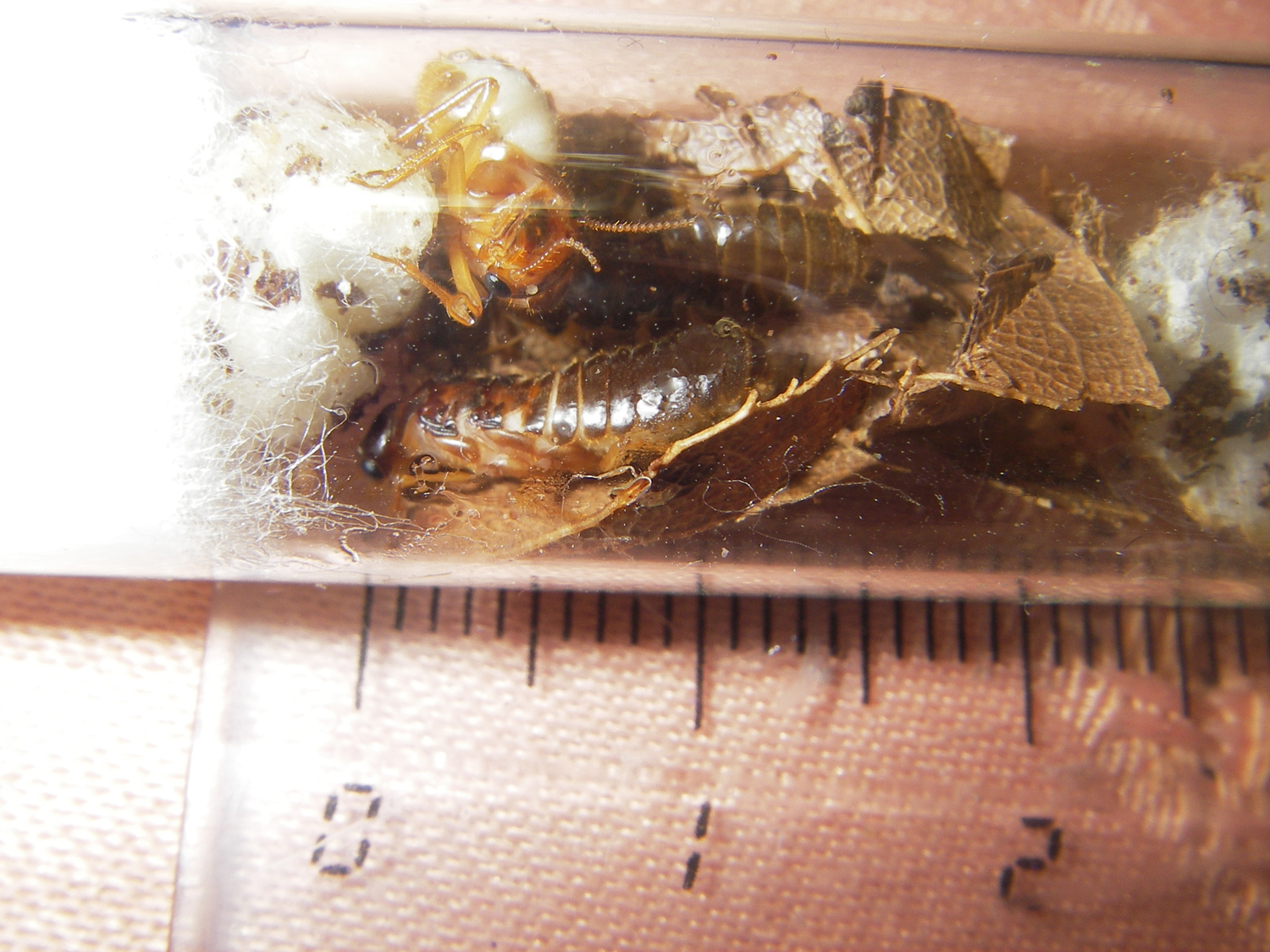 vediamo se riesco adesso a allevarli,ma per ora è difficile.ne tengo alcune coppie (o trittici: re + 2 regine) in boccette di vetro con cotone umido (molto) e piccoli frammenti di foglie secche, un trittico in una provetta-tipo da "formica regina fondatrice" e altro trittico in una capsula petri con terra e foglie umide... hanno deposto.