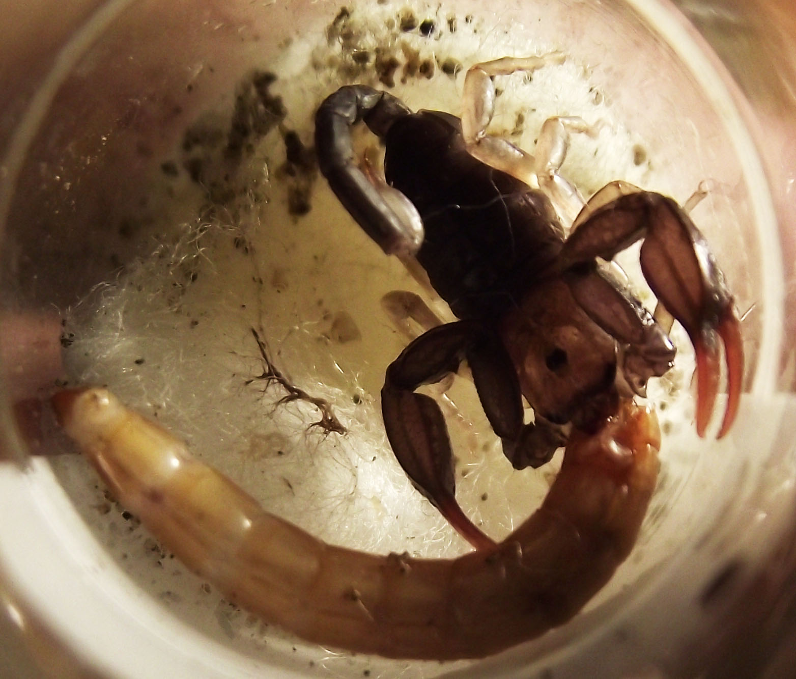 Dopo quasi un mese di digiuno oggi ho date loro sue piccole tarme della farina...in 20 secondi la piccola larva era morta per effetto del veleno e delle loro tenaglie!Ho fatto un piccolo video lo sistemo poi lo pubblico!