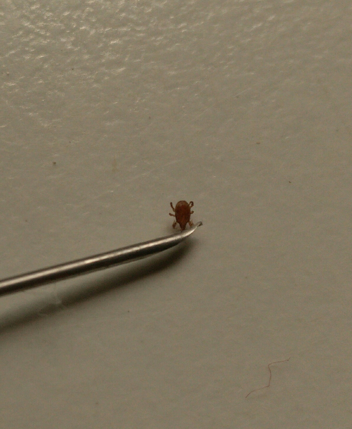 è proprio per il fatto che non si vede il quarto paio di zampe che ho detto zecca, infatti le ninfe appena nate fino al secondo stadio hanno solo 3 paia di zampe.