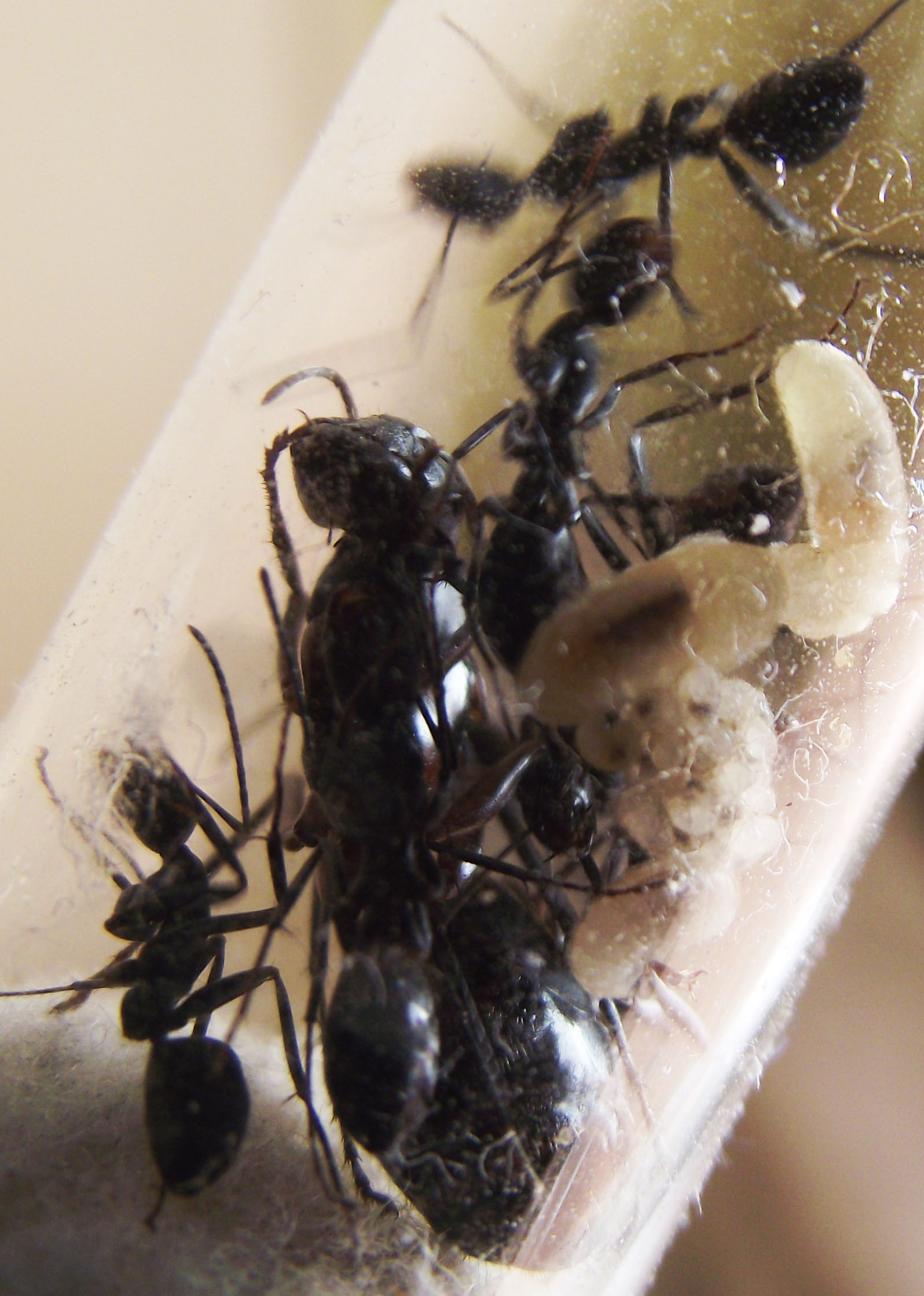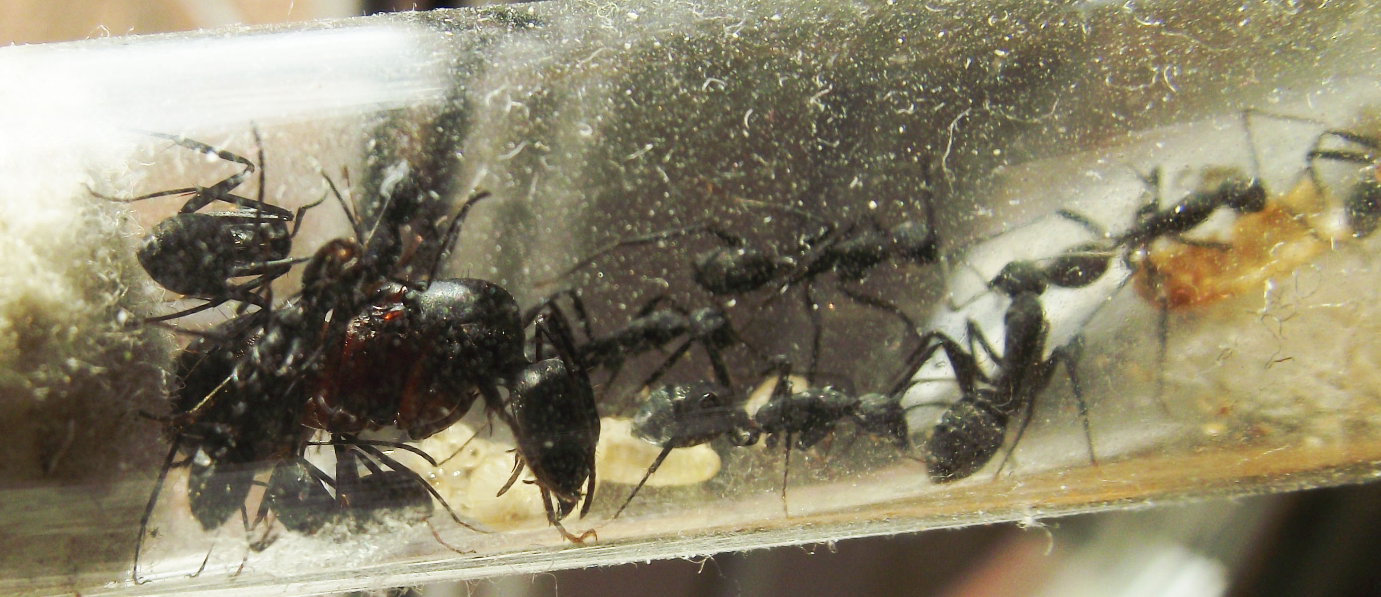 Purtroppo questa colonia si è estinta a causa dell'antiparassitario dei miei cani, per fortuna quest'estate ho trovato un'altra regina di questa specie e praticamente sono quasi allo stesso punto, una decina di operaie.
