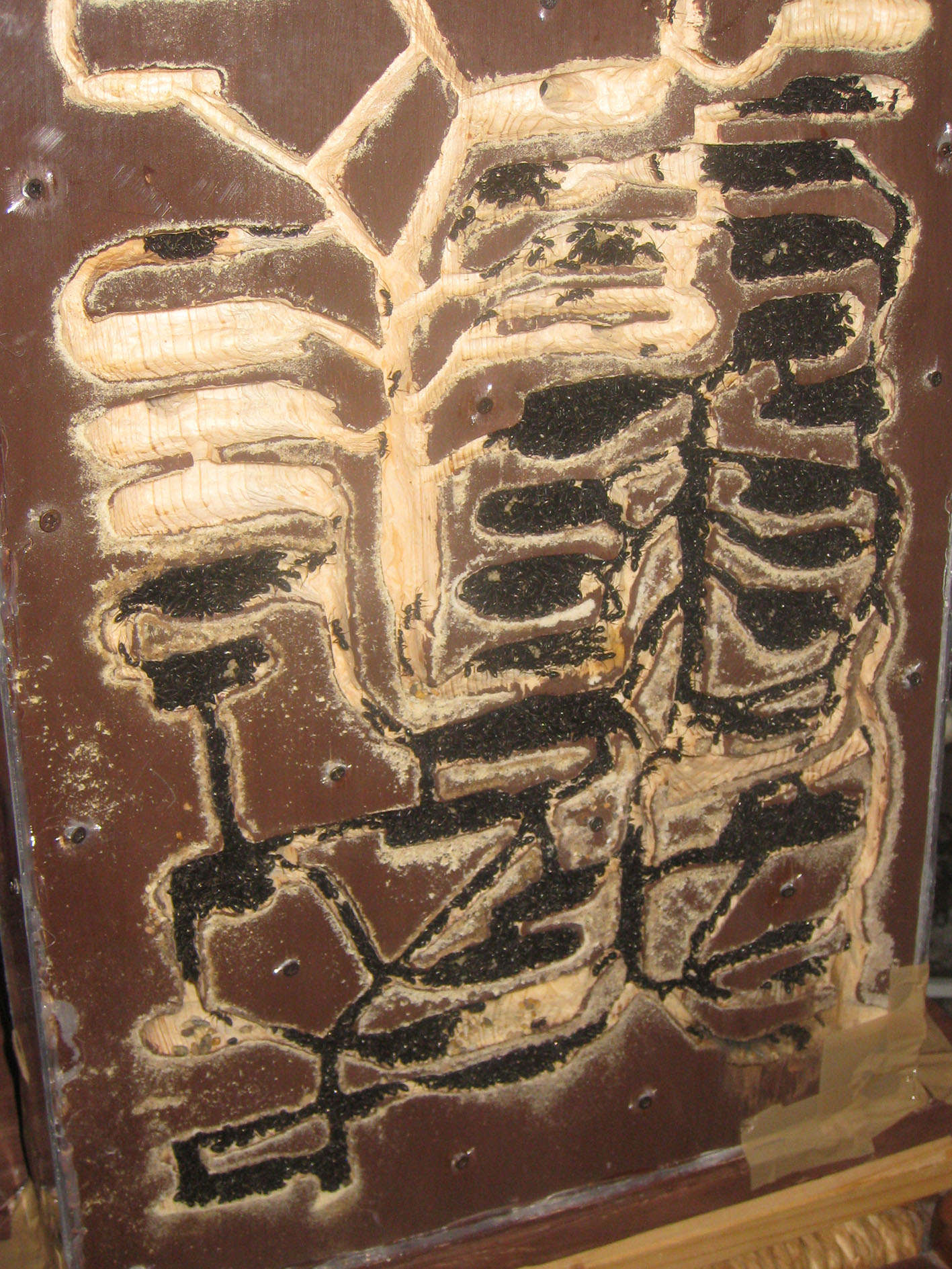 Ho tenuto i nidi collegati una decina di giorni, poi ieri, ho deciso per un'azione di forza e ho scollegato e aperto il vecchio nido, dove stazionavano ancora due o trecento formiche con gran parte della covata.
