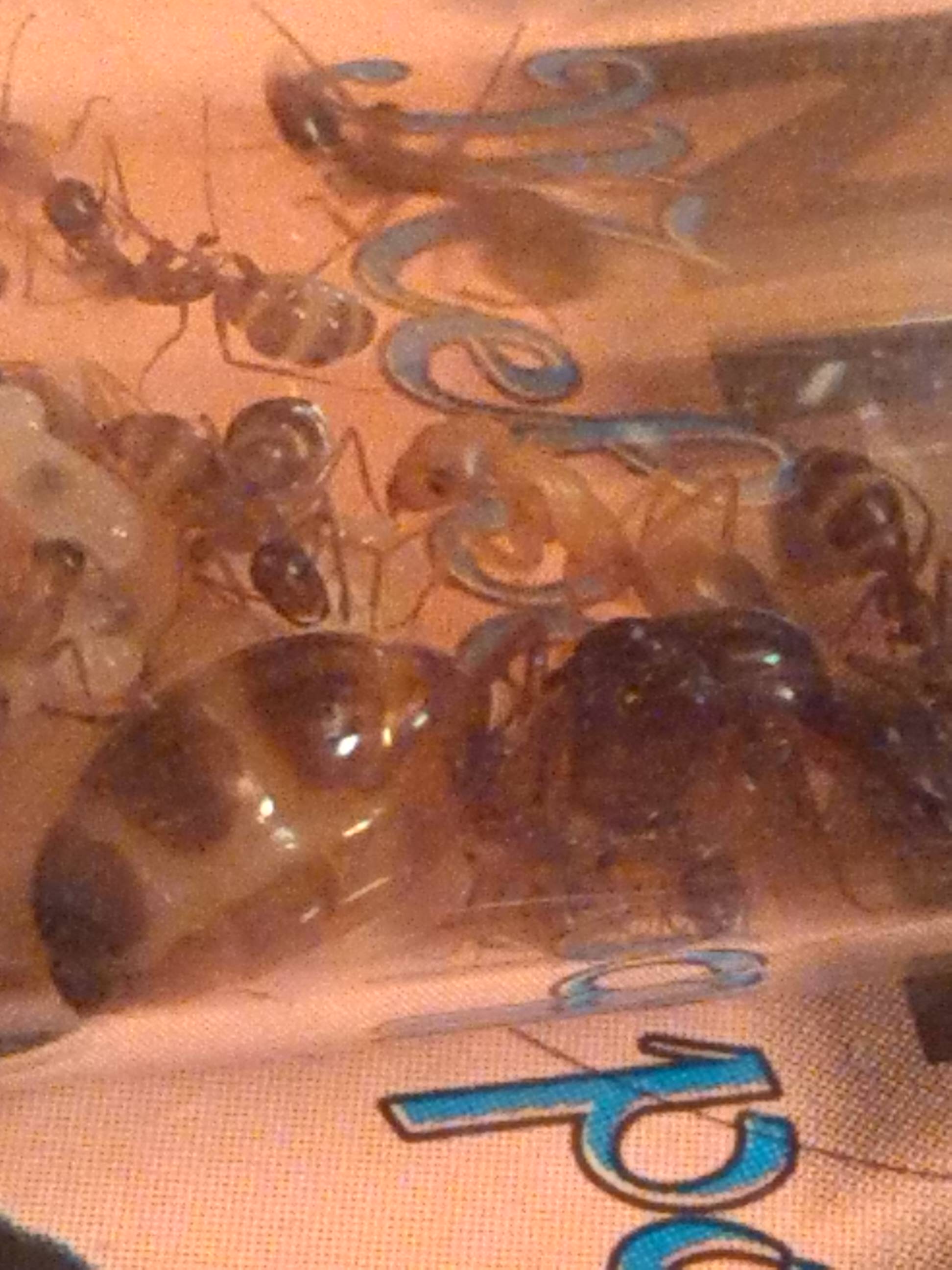 Il fatto è che la gocciolina di miele in arena resta intatta così come la zampetta di grillo e visto che la regina ha il gastro ben dilatato e che le trofallassi sono frequentissime pensavo che lei nutrisse tutta la colonia...Forse devo somministrare il cibo vicino all'entrata!!!