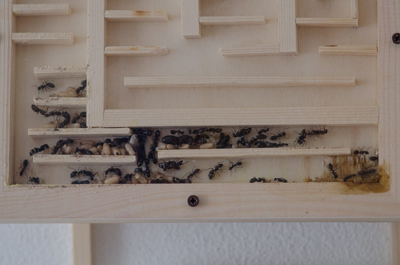 I bozzoli di Camponotus vagus sono tutti sfarfallati e questo sembra aver dato linfa alla regina. Ha rideposto e le larve che mi sembravano asciutte sembrano in salute e stanno crescendo. La colonia pare in salute, tutto bene direi.