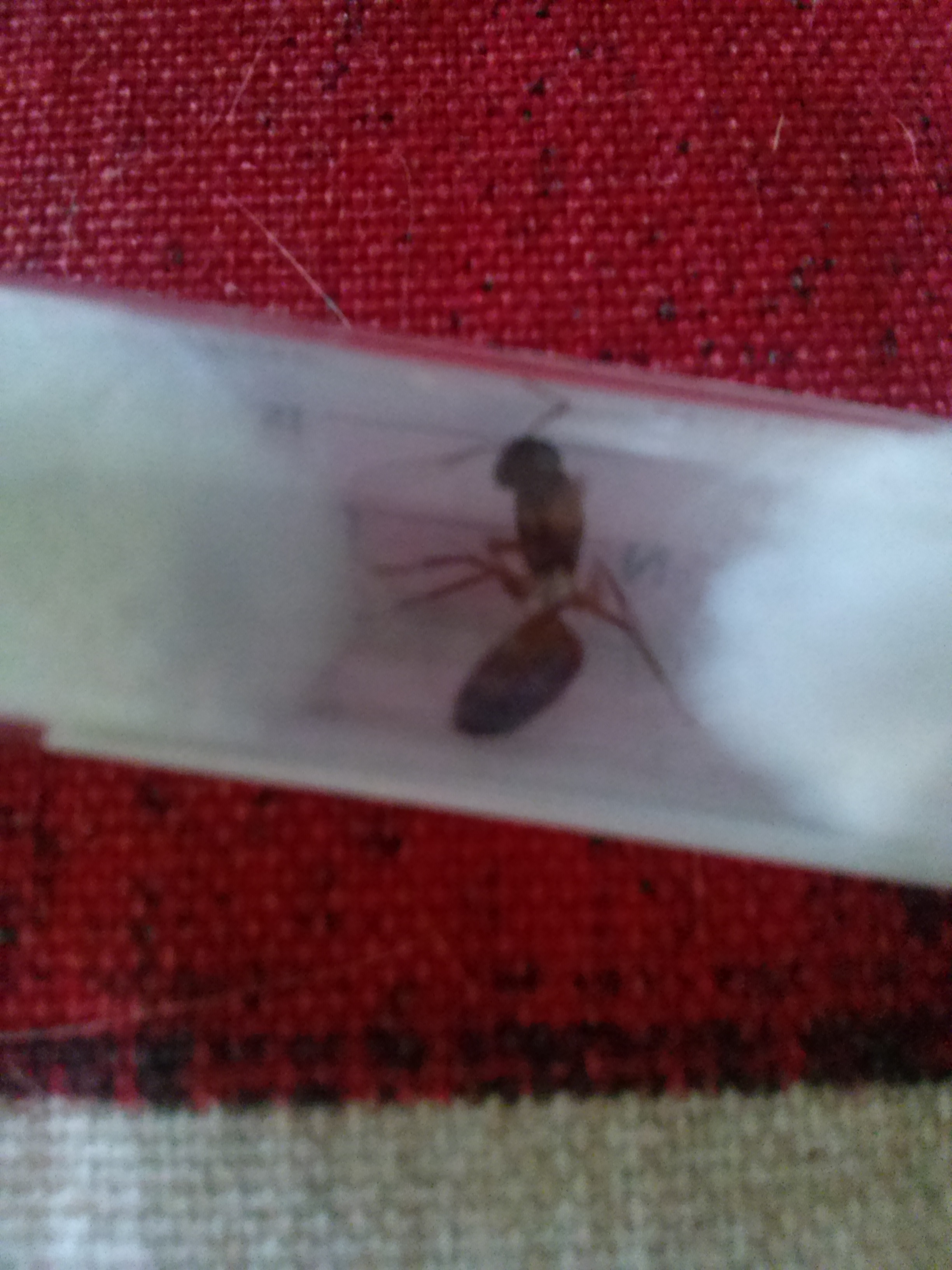 Salve a tutti,a nel settembre del 2015 ho trovato questi 2 esemplari di Camponotus nylanderi in giardino,cosi ho deciso di allevarle e fino ad oggi non hanno deposto uovo perchè solo oggi la temperatura media e arrivata ai 28°.In questo Post scriverò tutte le osservazioni e richieste di consigli perchè ho molti dubbi ,ad esempio la distanza tra il plexiglass e il formicaio e di circa 1 mm non so se e pericoloso,il tubo che collega arena e formicaio non combacia e lascia spazio e il formicaio ha solo 5 stanze e perchè le formiche stanno quasi spesso capovolte al contrario sopratutto una che ha un pezzo di bambagia attaccato.Vi ringrazio per l attenzione ,se potete scrivetemi le vostre opinioni (è la prima volta che provo ad allevare formiche
