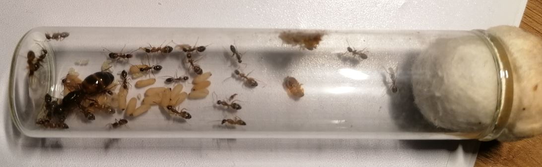 Tapinoma erraticum 4 regine, 50 uova e 2 operaie