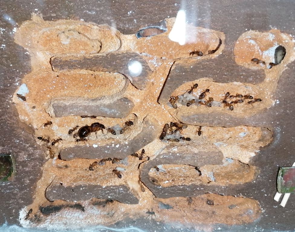 La colonia è divenuta ingestibile, le operaie sono troppo attive e alla somministrazione di piccole blatte o al cambio del cotone imbibito di acqua e miele cercano di scappare.