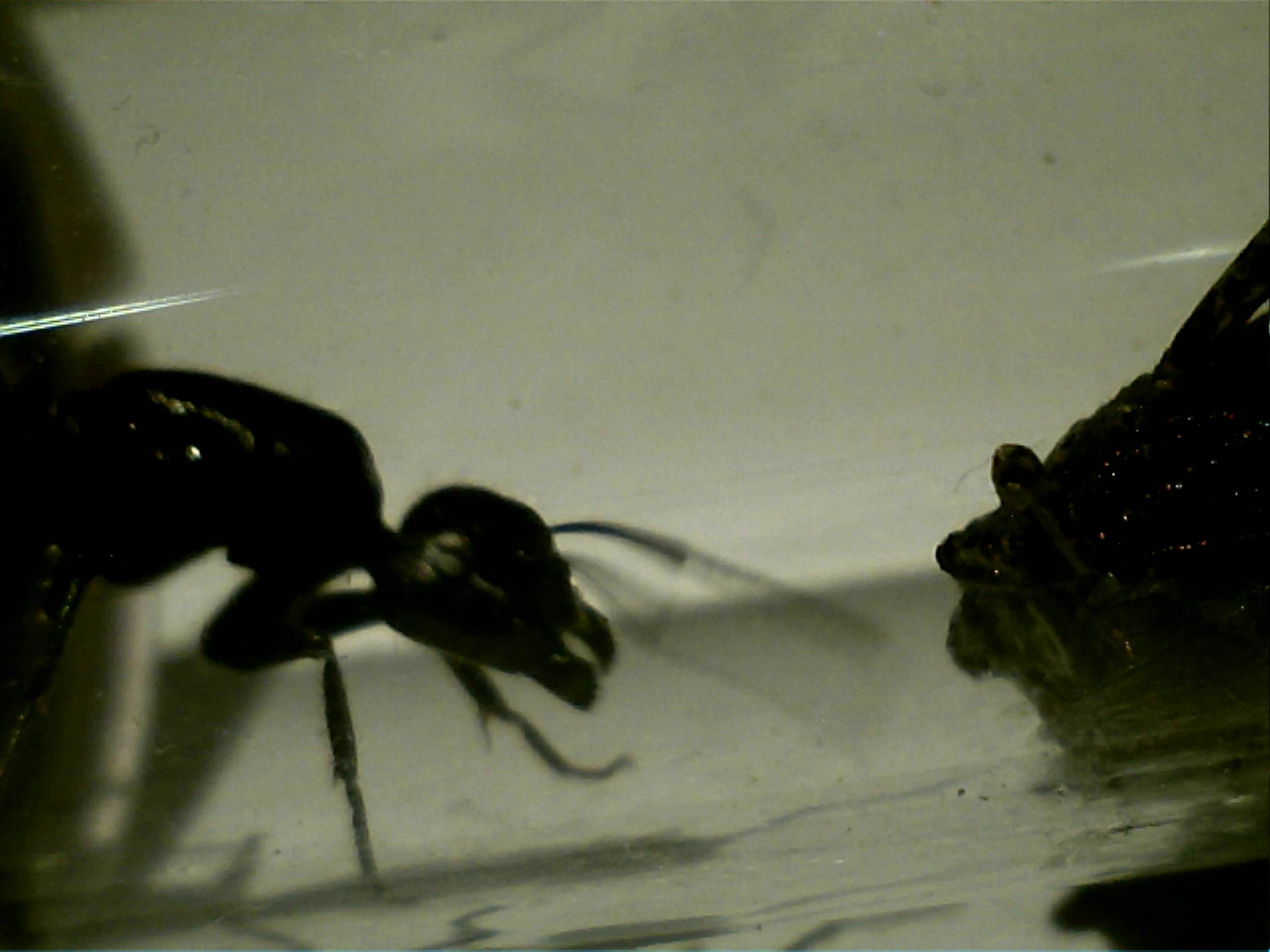 Ma mi sono reso conto che non avevo controllato bene. In realtà ha deposto recentemente, quelle che aveva prima non erano uova, ma già larve. Come si puo' vedere dalla foto. Accidenti se è veloce... Non ha ancora finito di svezzare le prime larve e già produce altre uova.. mmmmmm....