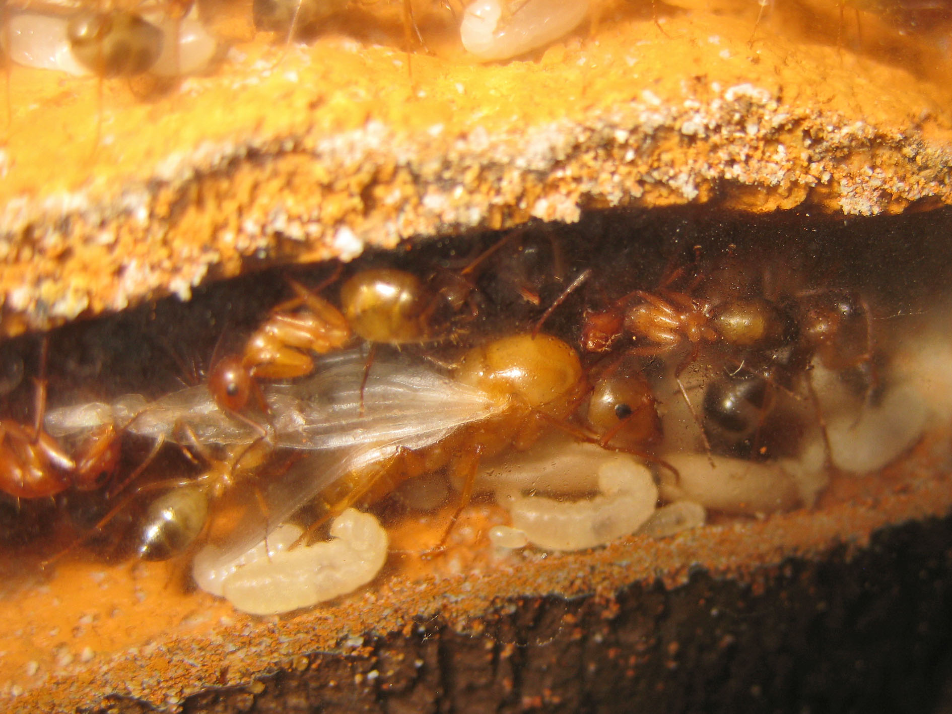 Ora anche io segnalo la presenza di enormi larve nella colonia di C. nylanderi; in precedenza era stato un falso allarme, ed erano nati solo soldati di una stazza superiore, ma ora terrò d'occhio le nascite e vedrò se si verifica la stessa situazione, nel qual caso dovremo ragionarci sopra.