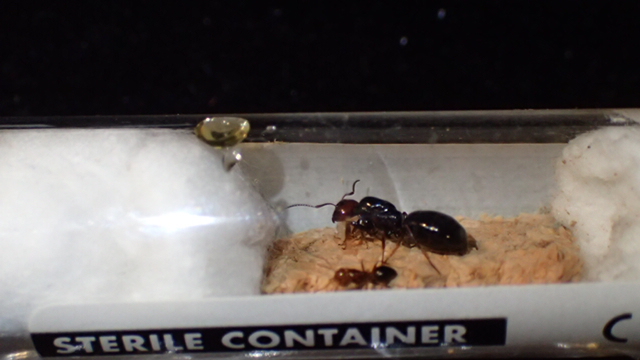1 Ho messo una piccola goccia di miele, come da foto, ma non credo sia posta in una buona posizione, nè sia l'alimento giusto (solo dopo ho letto che il meglio sarebbe una miscela di miele e acqua. Voi cosa dite? cambio subito provetta per evitare contaminazioni e porcherie o lascio che trovino il modo per arrivarci?