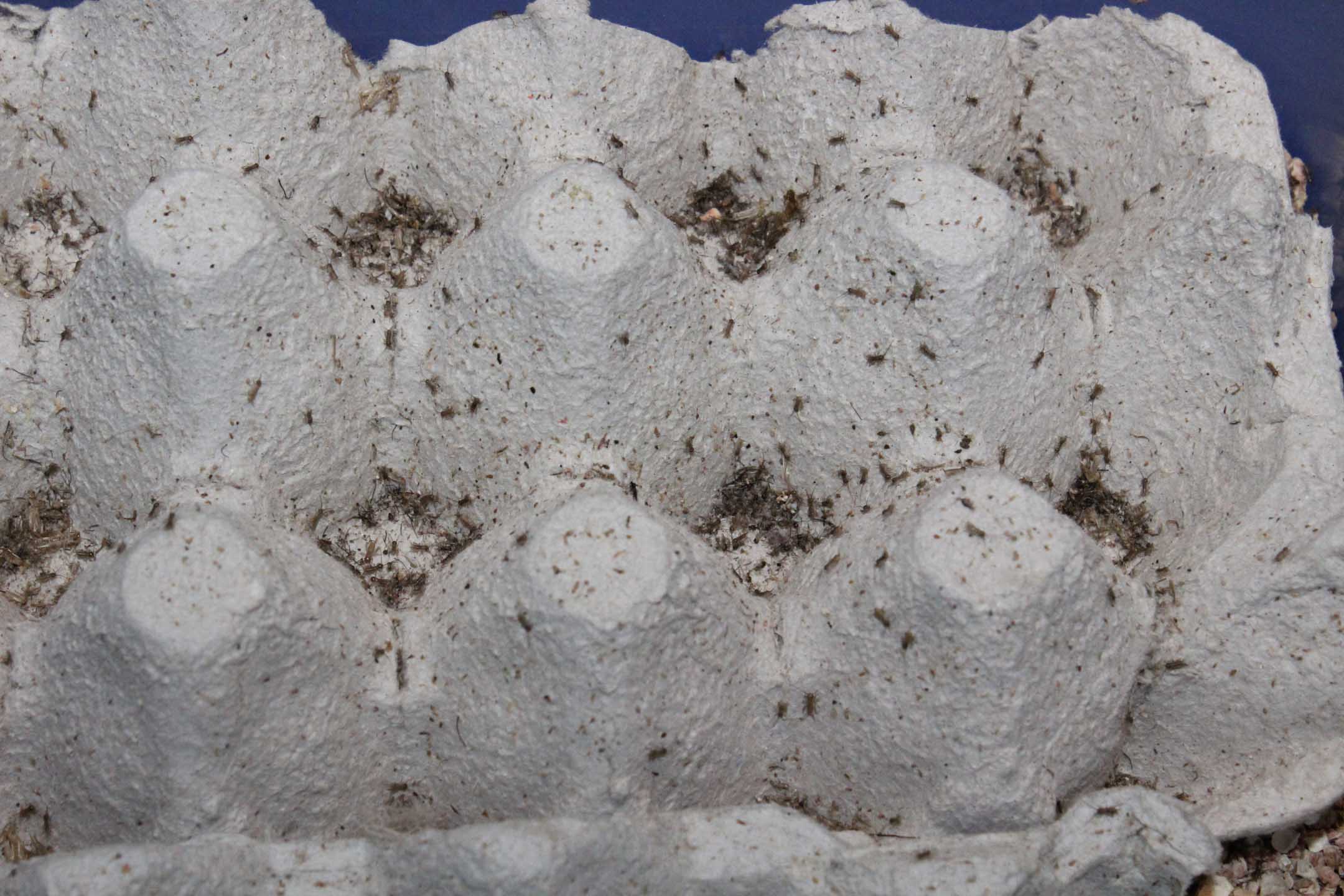 Ogni giorno nascono diverse centinaia di grilli. Due volte al giorno sposto i nascituri in un contenitore di accrescimento. Ecco qualche foto per capirci: