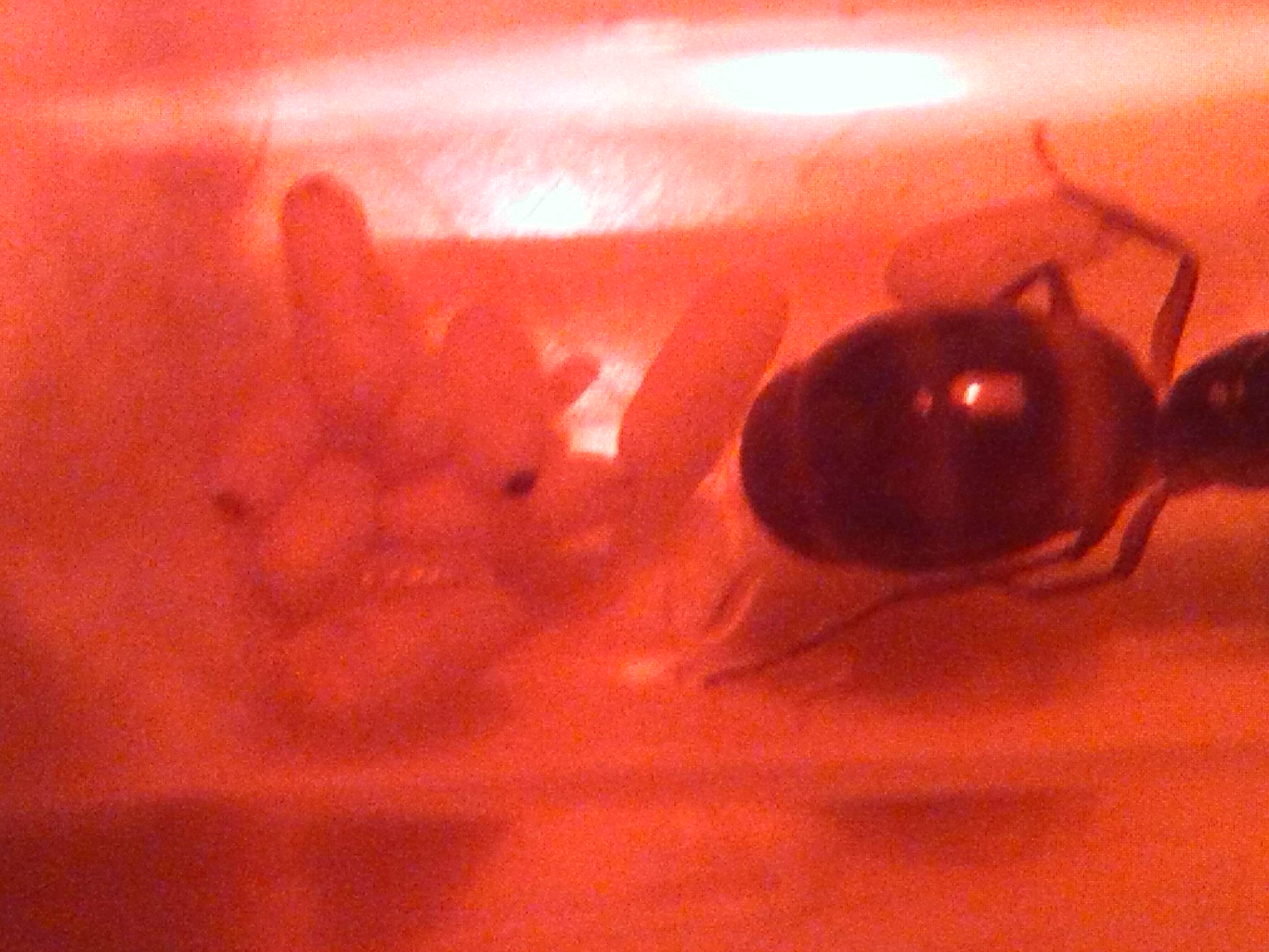 Comunque oggi la regina ha deposto un uovo(quindi ora ci sono 5 ovetti)inseguito alle stimolazioni di un'operaia che leccava e anteggiava(ho inventato un nuovo termine