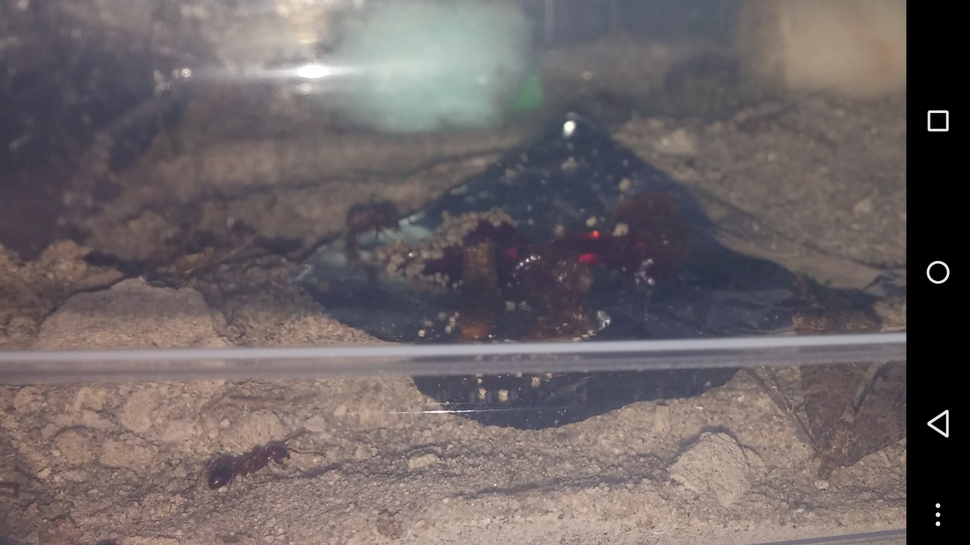 Per il resto ho fatto pulizia cambiando la sabbia, ho inserito una provetta nuova mettendola quasi completamente sommersa nella sabbia e ho posto il contenitore nella teca con una temperatura costante di 22 24 gradi! Si sono trasferite volentieri