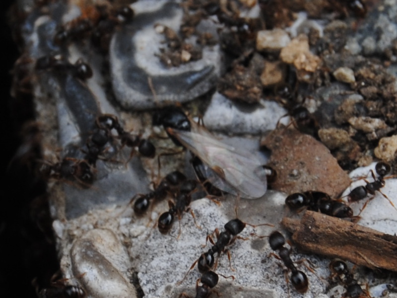Alati di Lasius fuliginosus. Ho notato più regine di maschi, in ogni caso nessuna dealata.