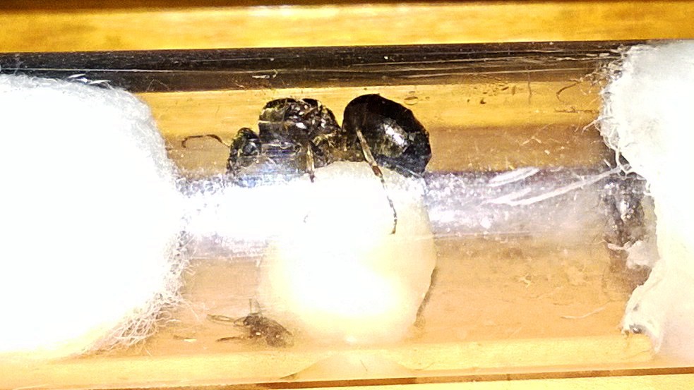 sono passati diversi giorni ma nulla, di uova neanche l'ombra. la regina è vispa, si muove molto, mangia sia il miele che gli insetti che le metto dentro (senza finirli però...difatti tolgo i resti dopo 2/3 giorni) ma di uova nulla.