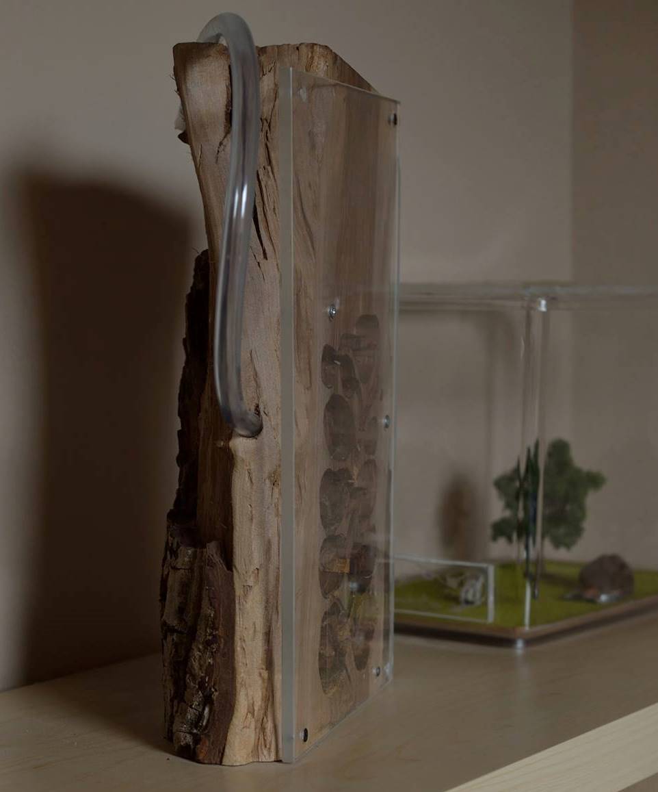Il formicaio è stato ricavato da un tronco di noce mentre l'arena da un vecchio acquario. Per ovviare al problema delle dimenzioni (eccessive) del formicaio sono stati inseriti dei blocchi di sughero nella speranza che una volta strette le formiche si sarebbero fatte spazio rimuovendo i tappi. Come blocco per la prima stanza è invece stato inserita della paglia di cocco, con l'idea che potesse venir rapidamente rimossa. A monte di questo stratagemma vi era la paura che le formiche avrebbero potuto decidere di non trasferirsi nel formicaio ritenendo già solo le prime due stanze uno spazio eccessivamente grande. Con le C. herculeanus avevo avuto difficoltà in questo senso.