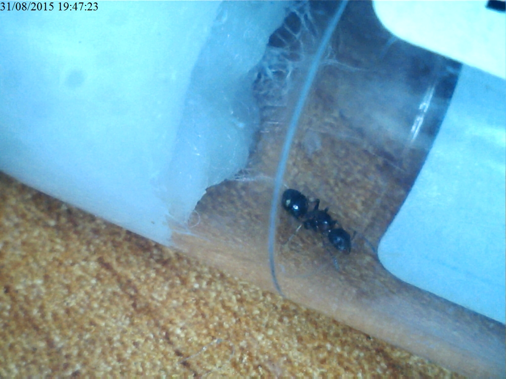 Stasera, ero andato a cacciare vicino ad un albero. C'era una formica, che non so dire se regina od operaia: c'era solo lei... Purtroppo mi sembra la Dolichoderus quadripuntactus. Purtroppo perché non ho il sughero...