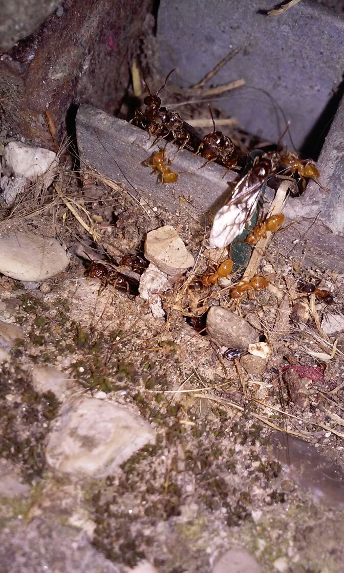 La emarginatus è di una colonia vicina ed è statq fatta a pezzi poco dopo la foto dalle operaie di Chthonolasius(a questo punto sappiamo cosa sono ).
