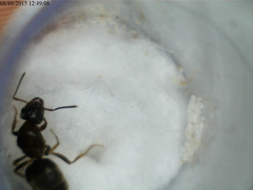 La mia regina in provetta aperta in arena ha circa 20 operaie e una 50ina di elementi di covata tra uova/larve/pupe. Raccolta il 4 luglio.