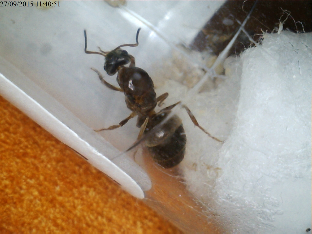 Poi l'Alpha, anche se la regina è MOLTO magra... Sto poi per aprire un diario su una colonia di Lasius del gruppo niger. Anche questa, ha ben 3 operaie!
