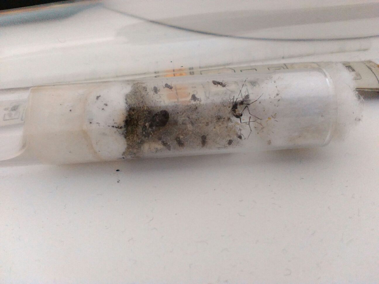 la sera ho dato loro una zanzara che hanno gradito un sacco, in 40 min restavano 2 zampe e mezza ala, sospetto ci sia stata deposizione di uova perchè ne ho notate parecchie di più, ma potrebbe essere un'impressione perchè il cotone maschera parecchio