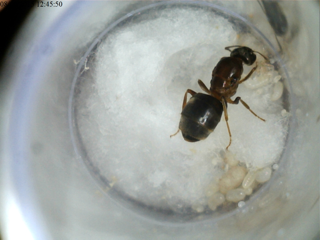 La mia regina in provetta aperta in arena ha circa 20 operaie e una 50ina di elementi di covata tra uova/larve/pupe. Raccolta il 4 luglio.
