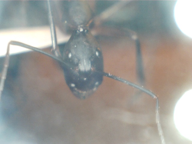 Mi sembrava a torto avesse il capo largo proprio perché come fai notare di profilo il capo è sviluppato in altezza e senza riferimenti mi ricordava una media delle nostre vista a tre quarti, ma nell'immagine dall'alto si vede bene che è un capo molto più stretto di quanto l'ingannevole prospettiva laterale faccia pensare. Comunque si è bella strana quella testa vista dall'alto (molto più particolare e interessante forse vista così): è stretta e slanciata quanto i nostri Tanaemyrmex fin tanto che la si guarda frontalmente nella parte bassa, mentre da metà in poi diventa bombata verso l'alto e rastremata quanto una pera nella parte posteriore: sicuramente peculiare questa forma di adattamento.