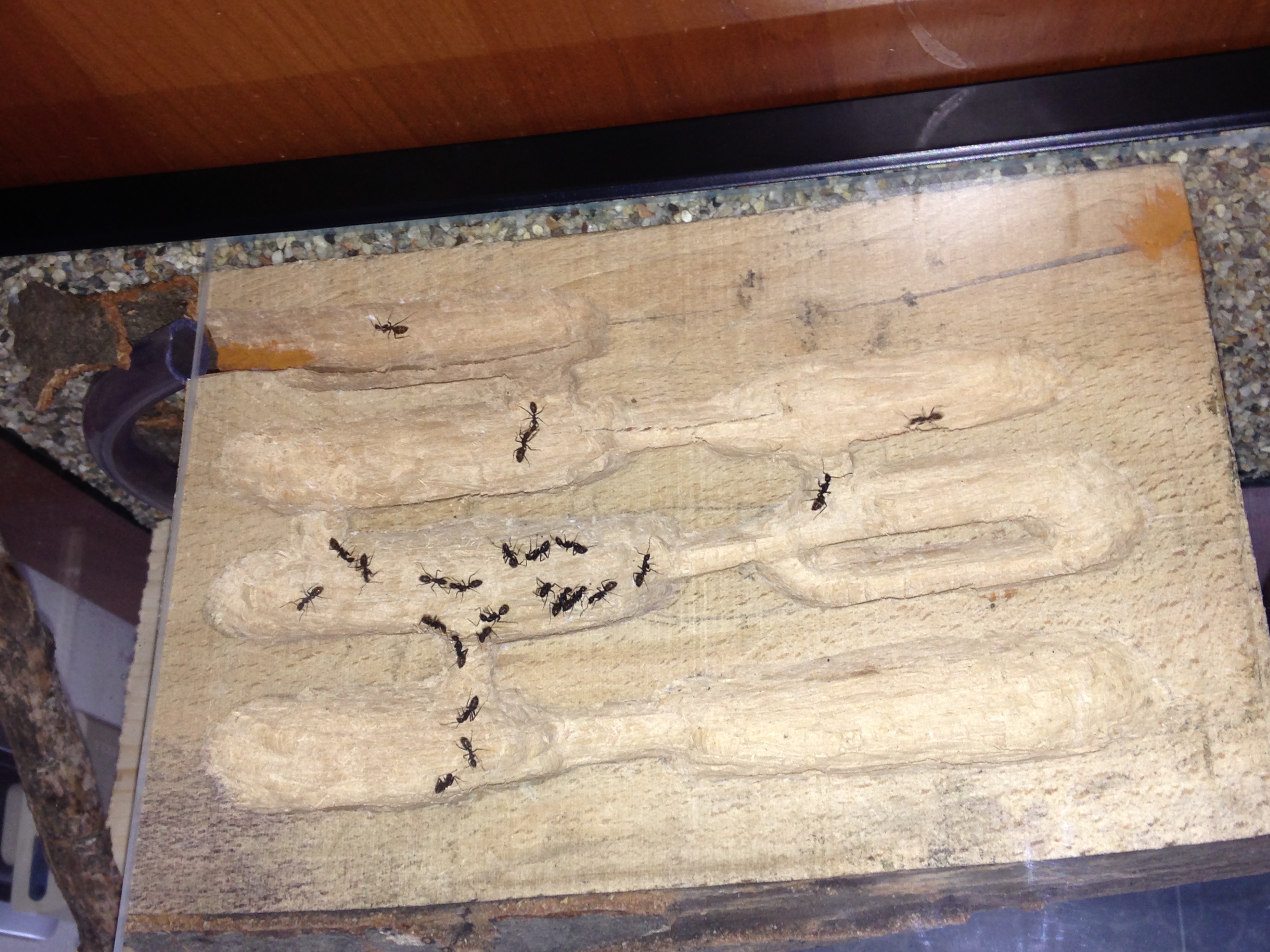 Appena posso farò delle foto, prima devo vedere come si evolve il problema che sta insorgendo, ovvero: dal nulla stanno aprendosi delle evidenti crepe nel legno, anche nella parte delle camere e questo mi preoccupa non poco perché l'espansione non accenna a fermarsi. All'inizio o provato a tamponarle con del cotone, ma proseguono, fortunatamente il nido è in arena, ma se si allargano troppo potrebbero diventare assai compromettenti per la struttura oltre a fornire un abile motivo per lo scavo. Vediamo.