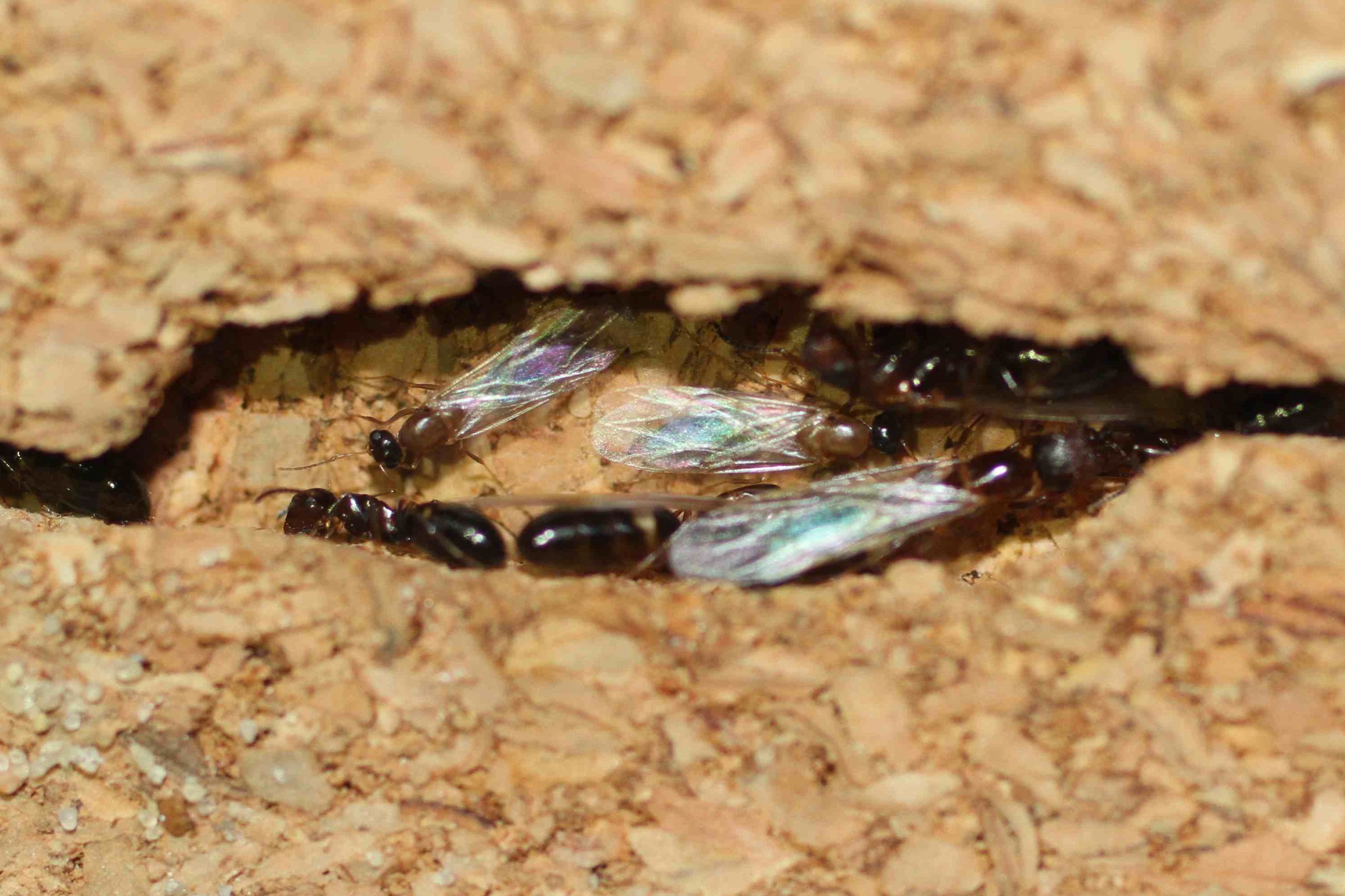 se parliamo della colonia trovata assieme ti consiglierei di fare in modo che abbiano un'arena aperta e si trovino vicino ad una finestra aperta nel periodo di sciamatura, cosi che sessuati di altri nidi possono trovarla, è infatti facile che sopratutto la sera maschi e regine di questa specie entrino in casa.