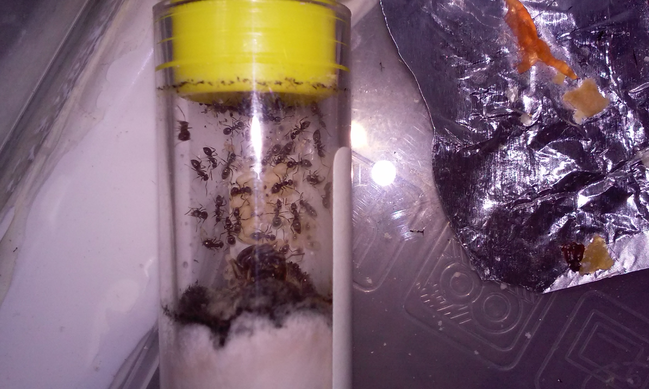 Tutti gli insetti forniti sono stati svuotati,pur essendo più delle Tetramorium si dimostrano meno fameliche di quest ultime.