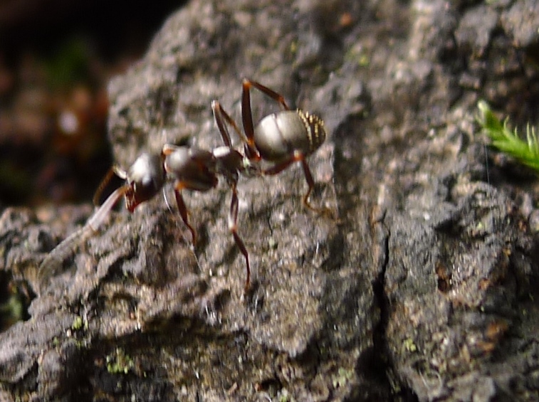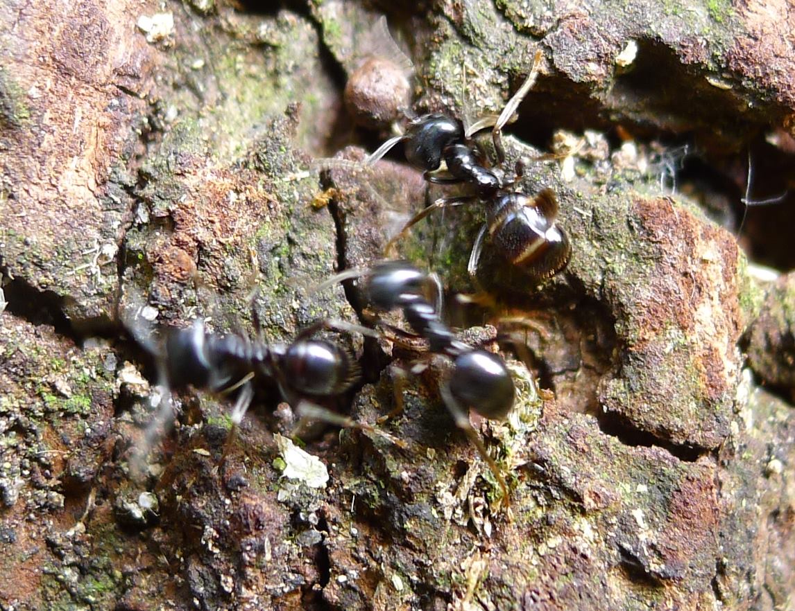 In mezzo alle fuliginosus si vedevano occasionalmente formichine come quelle delle foto che aggiungo (Temnothorax?), il rapporto fra le due diverse specie era di totale indifferenza reciproca.