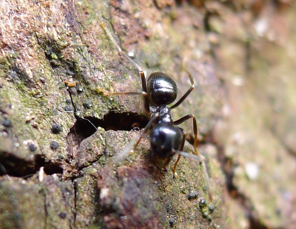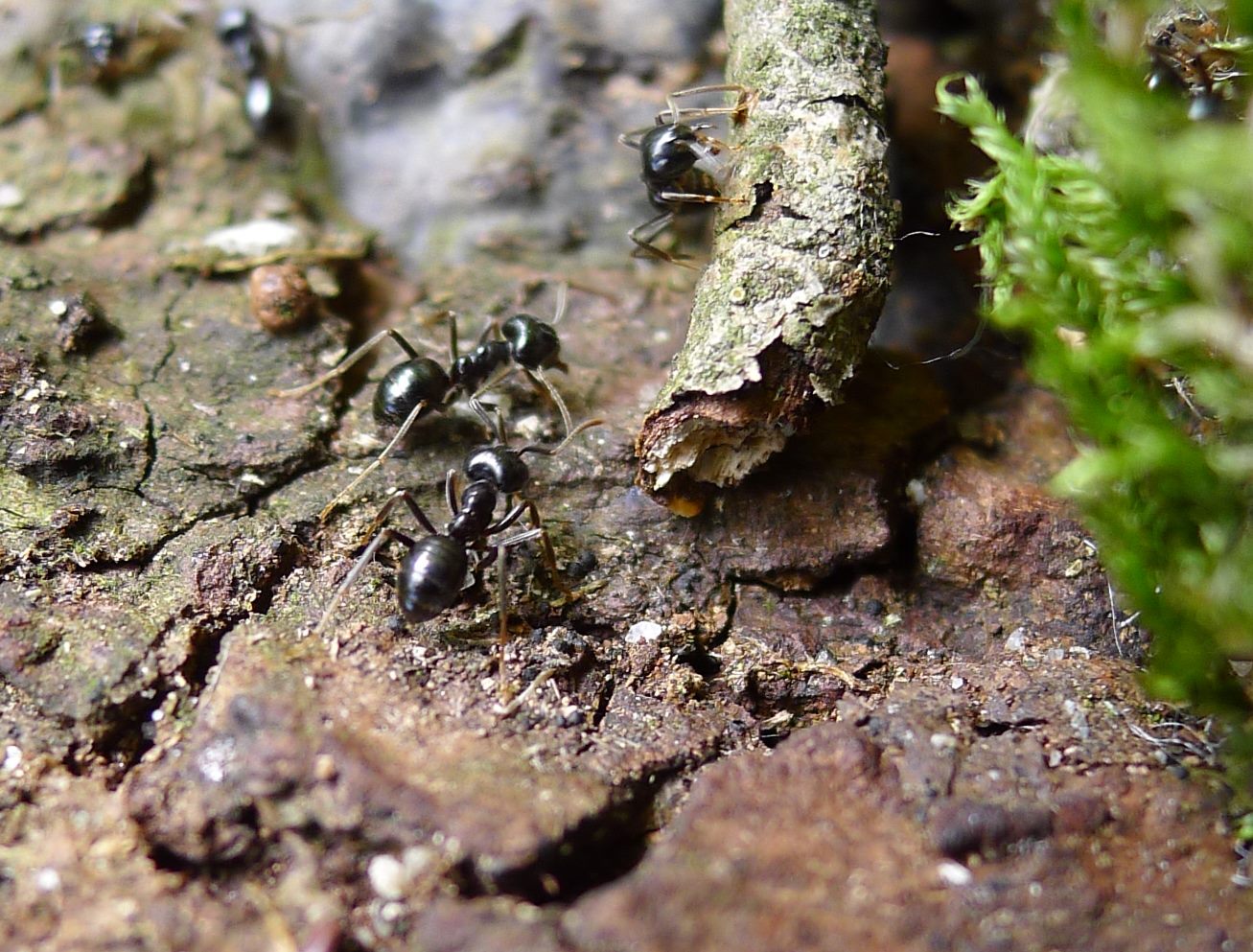 In mezzo alle fuliginosus si vedevano occasionalmente formichine come quelle delle foto che aggiungo (Temnothorax?), il rapporto fra le due diverse specie era di totale indifferenza reciproca.