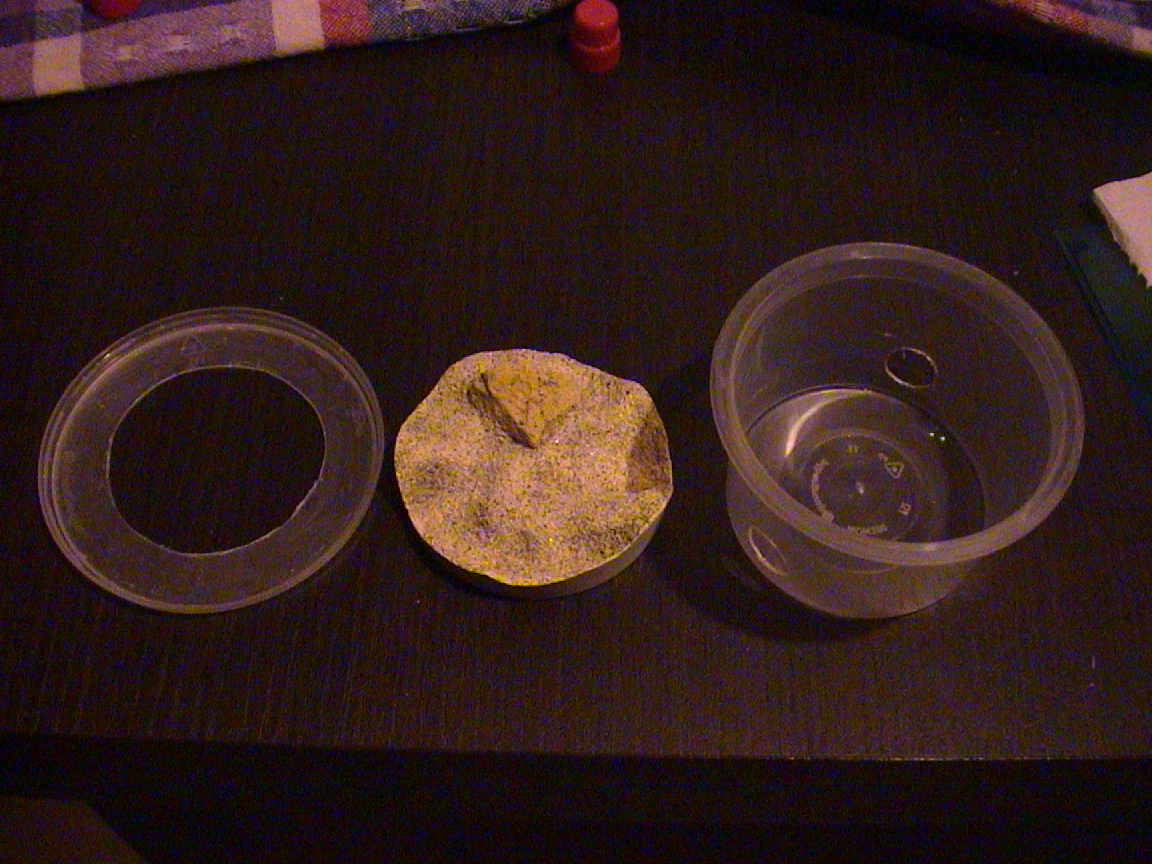 Comunque, con un piccolo lavoretto di fai da te, ho realizzato una piccola arena con antifuga a tetto, utilizzando una vaschetta del pesto, avente diametro di circa 7 cm.