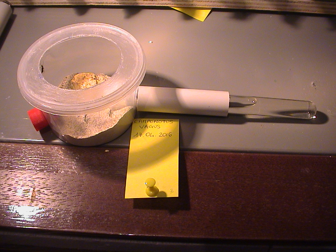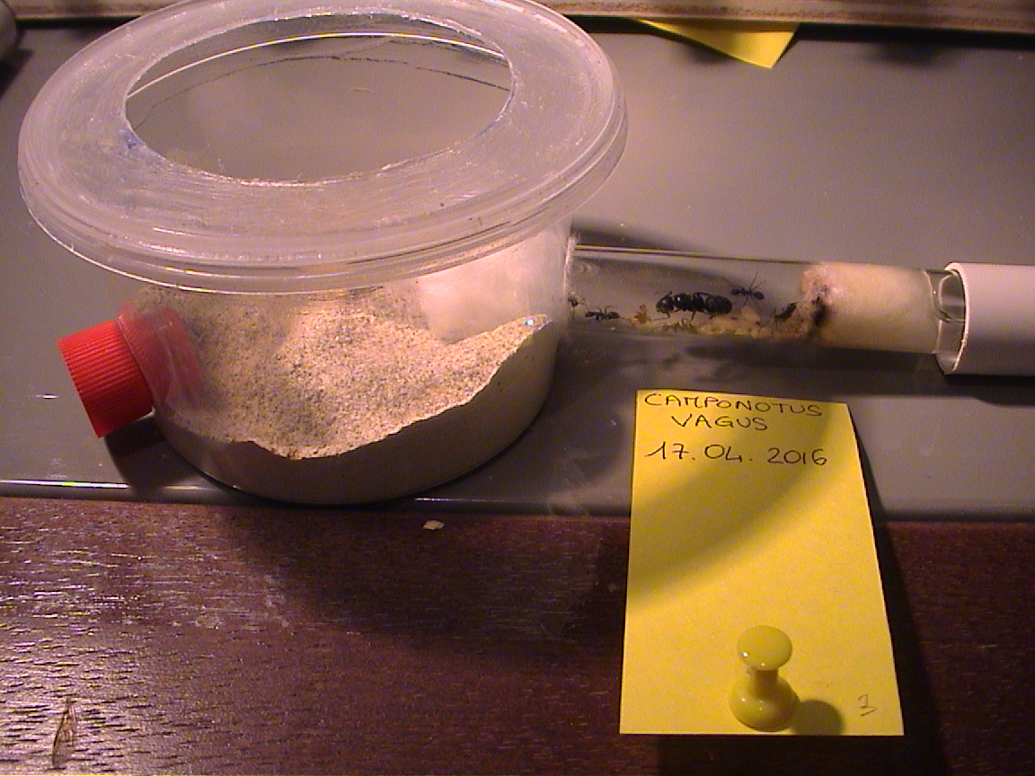 Le operaie ormai sono sempre più statiche e non le vedo più in arena a foraggiare. Le temperature qui negli ultimi giorni si sono abbassate parecchio e in casa ho una temperatura di circa 19/20 gradi di giorno, probabilmente di notte scendono ancor di più. Tra tutte le specie che allevo, le Camponotus vagus si sono rivelate le più sensibili all'abbassamento delle temperature.