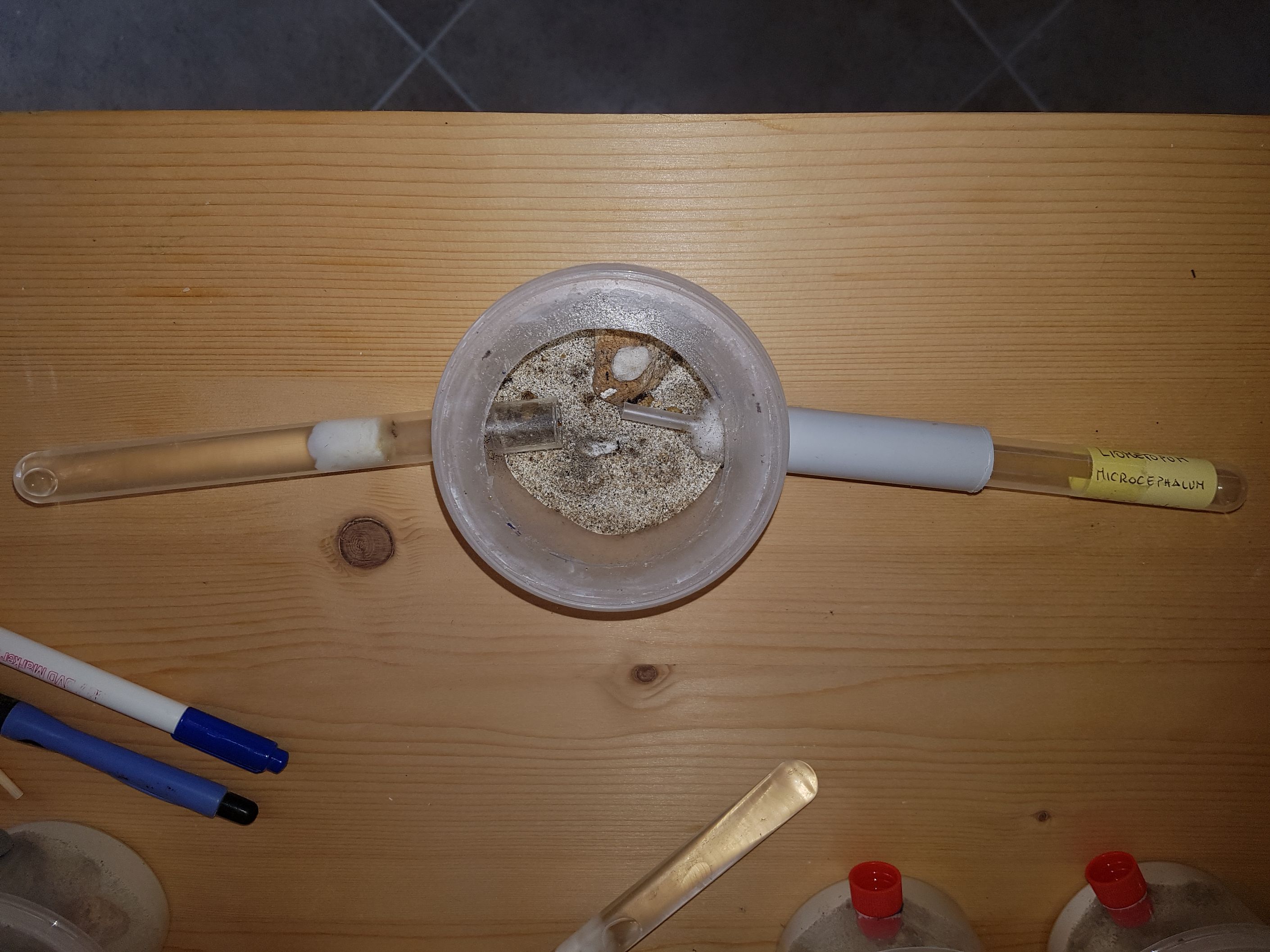 In arena c'è solo la provetta dei Liometopum oppure c'è anche un serbatoio esterno? Dico questo perché spesso alcune mie colonie trasferiscono la covata vicino ad altre fonti di umidità. Mi sembra strano che si siano mangiate tutta la covata.