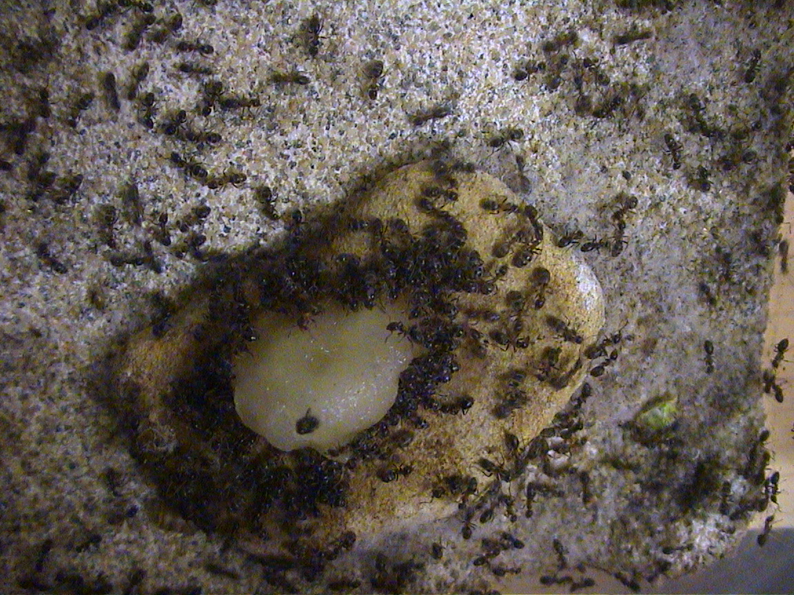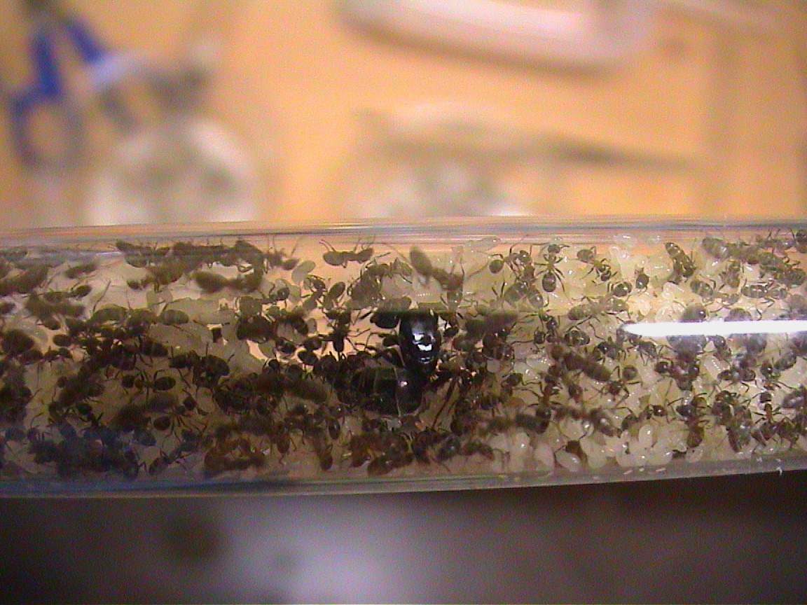 Ciao ragazzi, mi serve un consiglio... le Liometopum microcephalum non accennano a rallentare minimamente la loro attività, nonostante il calare delle temperature (nella loro stanza ci sono circa 18°c). Hanno una covata impressionante, moltissime larve e altrettante pupe. La regina è costretta a risiede in una sorta di canale scavato tra le larve e le pupe