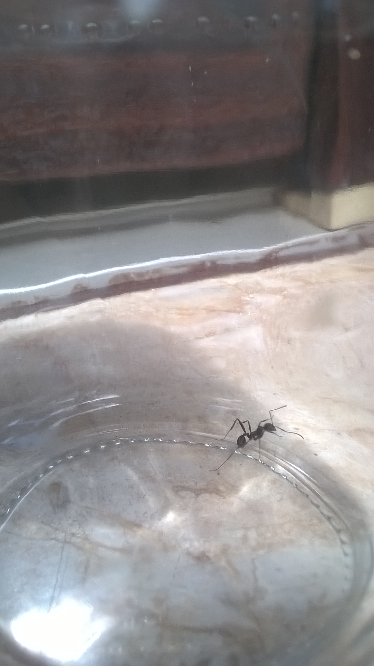 E siamo a tre sconosciuti nel giardino..sempre provincia di Cagliari, stamattina..nei pressi del formicaio delle Messor wasmanni che Winny ha provveduto a riconoscere nella prima richiesta di identificazione..la foto è pessima, chiedo scusa..ha le dimensioni delle M. wasmanni ma ha le zampe più lunghe ed è più veloce e snella, nera e opaca..era solitaria e non sembrava particolarmente interessata né al formicaio né ai frammenti di frutta secca che sono invece oggetto di curiosità per le padrone di casa..