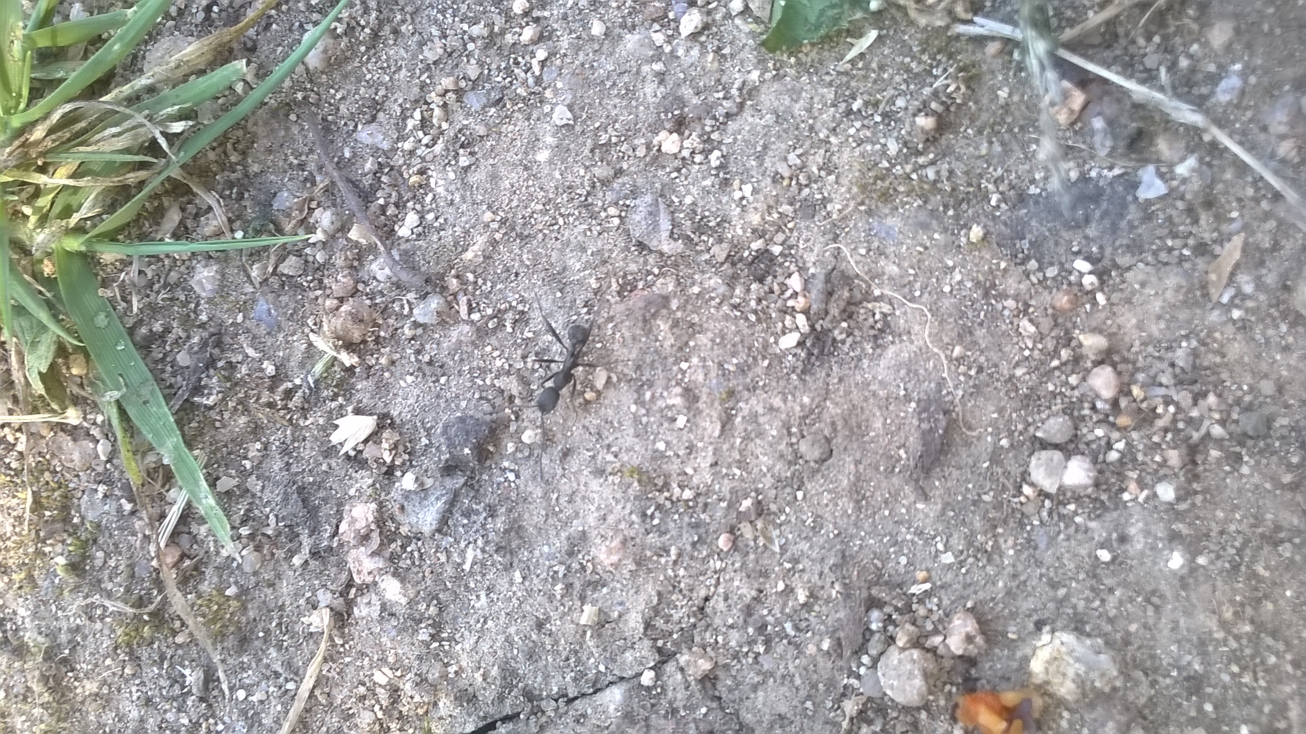 E siamo a tre sconosciuti nel giardino..sempre provincia di Cagliari, stamattina..nei pressi del formicaio delle Messor wasmanni che Winny ha provveduto a riconoscere nella prima richiesta di identificazione..la foto è pessima, chiedo scusa..ha le dimensioni delle M. wasmanni ma ha le zampe più lunghe ed è più veloce e snella, nera e opaca..era solitaria e non sembrava particolarmente interessata né al formicaio né ai frammenti di frutta secca che sono invece oggetto di curiosità per le padrone di casa..