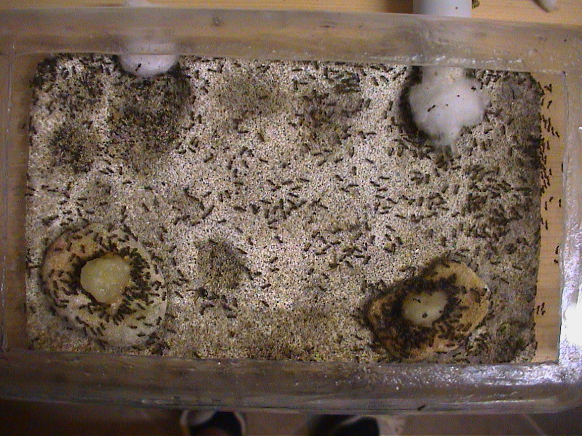 Ciao ragazzi, mi serve un consiglio... le Liometopum microcephalum non accennano a rallentare minimamente la loro attività, nonostante il calare delle temperature (nella loro stanza ci sono circa 18°c). Hanno una covata impressionante, moltissime larve e altrettante pupe. La regina è costretta a risiede in una sorta di canale scavato tra le larve e le pupe