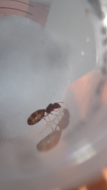 Pheidole pallidula , ha il gastro bello gonfio, se la lasci al buio dentro un cassetto entro domattina potrebbe aver già deposto.