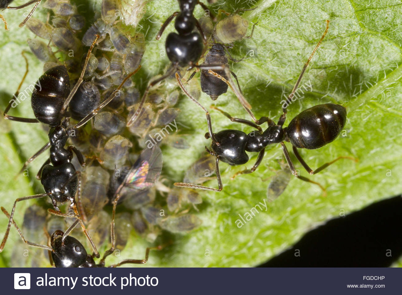 jet-black-ant-lasius-fuliginosus-adult-workers-tending-aphids-on-willow-FGDCHP.jpg