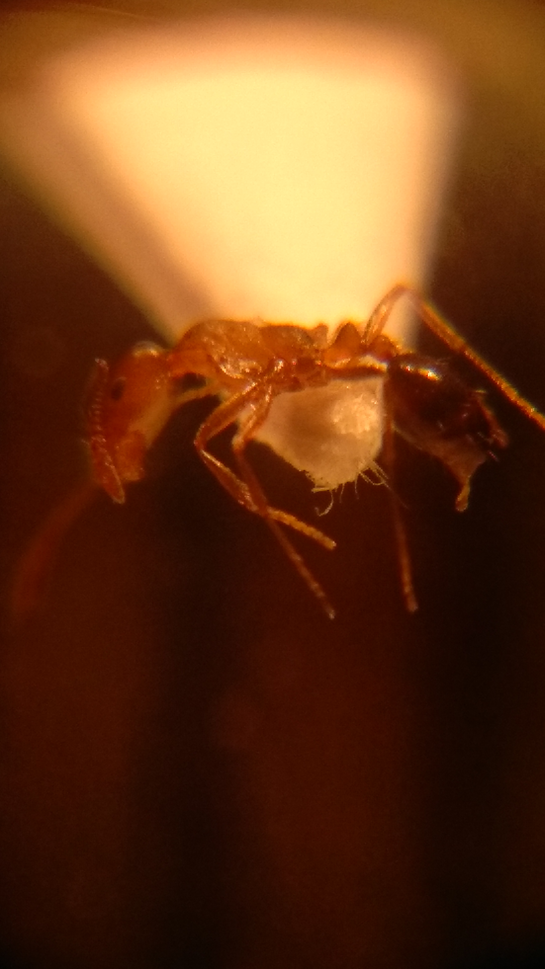 Per la Pheidole: il colore è, come quasi sempre nel genere, irrilevante. Un colore molto chiaro però è un altro indizio di un posto molto assolato e poco frondoso, dato che le variazioni chiaro/scure intraspecifiche nelle Pheidole spesso dipendono dall'esposizione al sole. Si tratta chiaramente di una Pheidole del complesso pallidula. Solo che ora dovrebbe venire Seifert a dirmi se secondo lui si tratta di P. balcanica, P. koshewnikovi o altro...