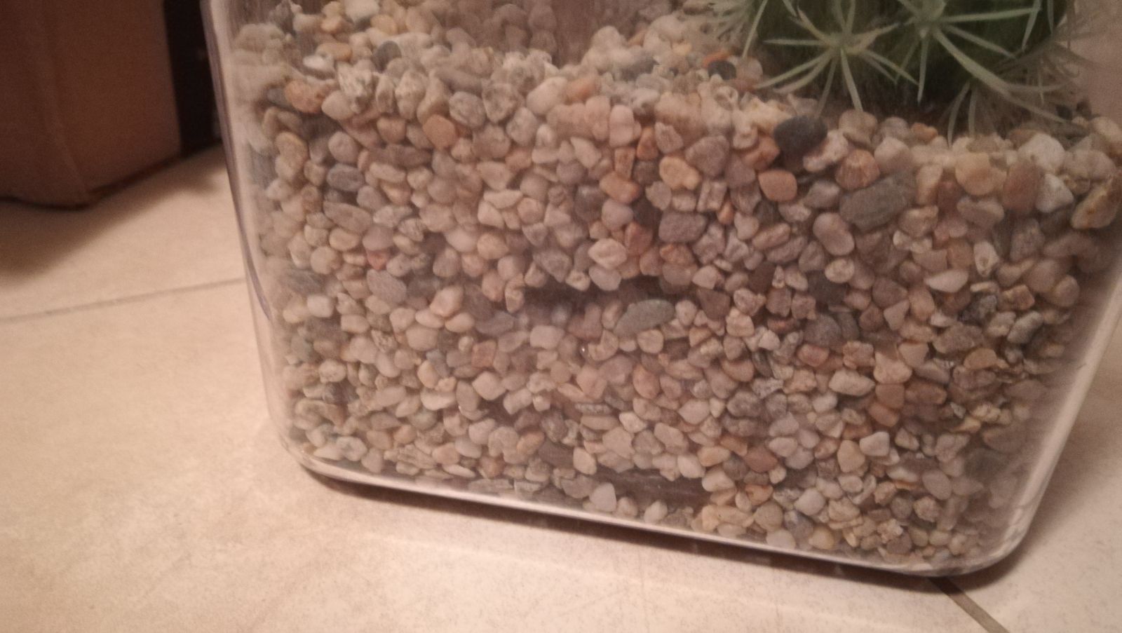 Ho inserito due rametti che poi sostengono la provetta in modo da non tenerla a diretto contatto con la ghiaia tiepida.