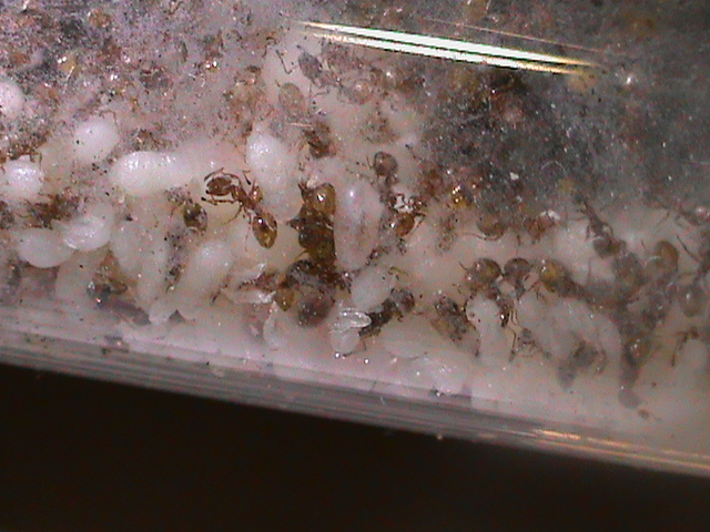 Hanno già ridotto malissimo la provetta, in oltre cominciano ad appendere le larve alle pareti e sembrano strette, purtroppo credo sia ora di pensare ad un nido.