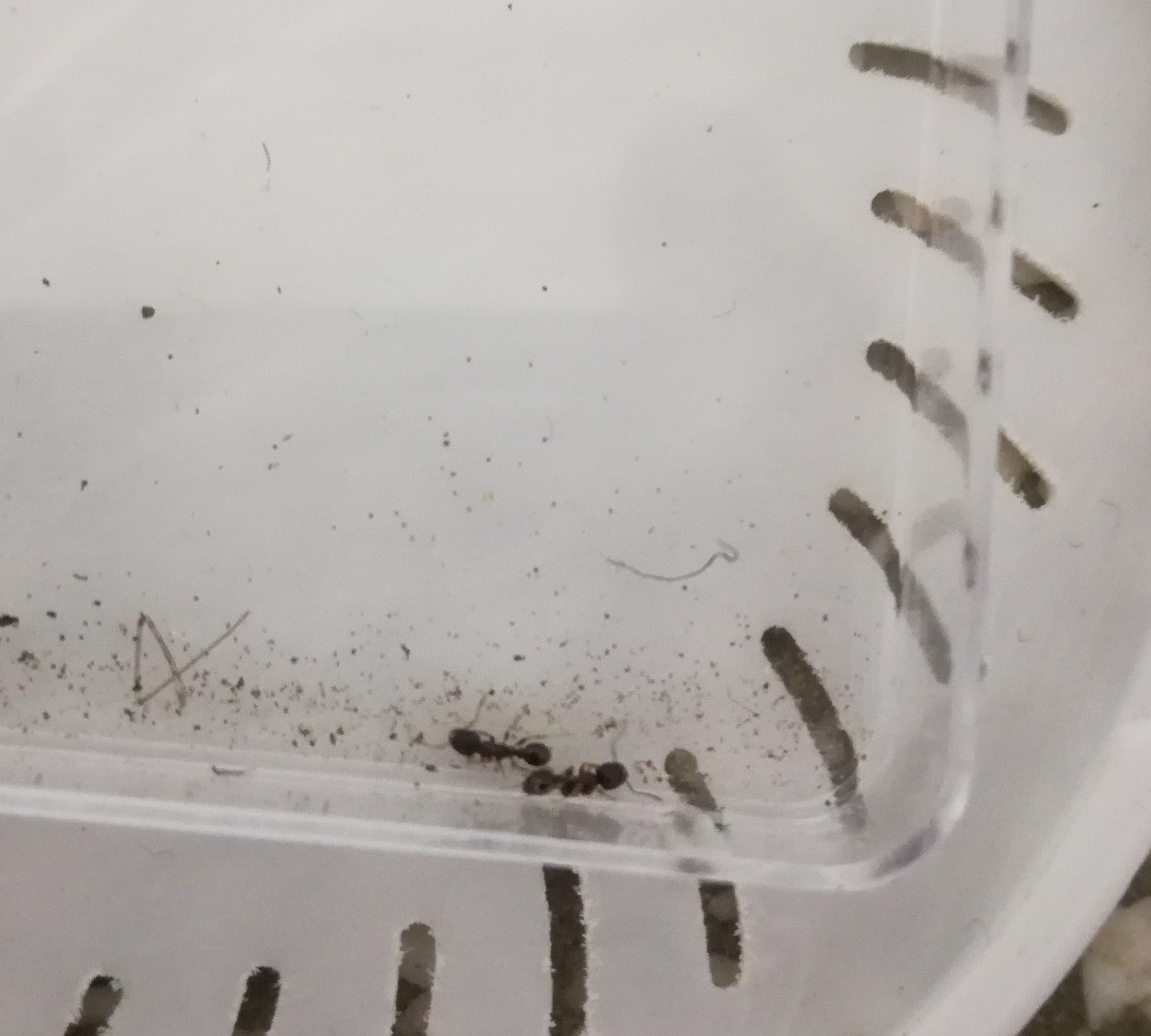 Osservando le specie di formiche presenti nel mio orto, ho notato che per tutto l'orto vi è solo una specie, tranne per qualche caso particolare di Crematogaster scutellaris. Queste formiche di dimensione 3mm, nere, sembrano poco aggressive e dalle mie osservazioni sono delle raccoglitrici, dato il ritrovamento di semi e operaie sotto una pietra. In più hanno deciso di usufruire delle mie fragole, costruendo entrate nelle loro prossimità. Vi allego le foto, sapete di che specie si tratta?