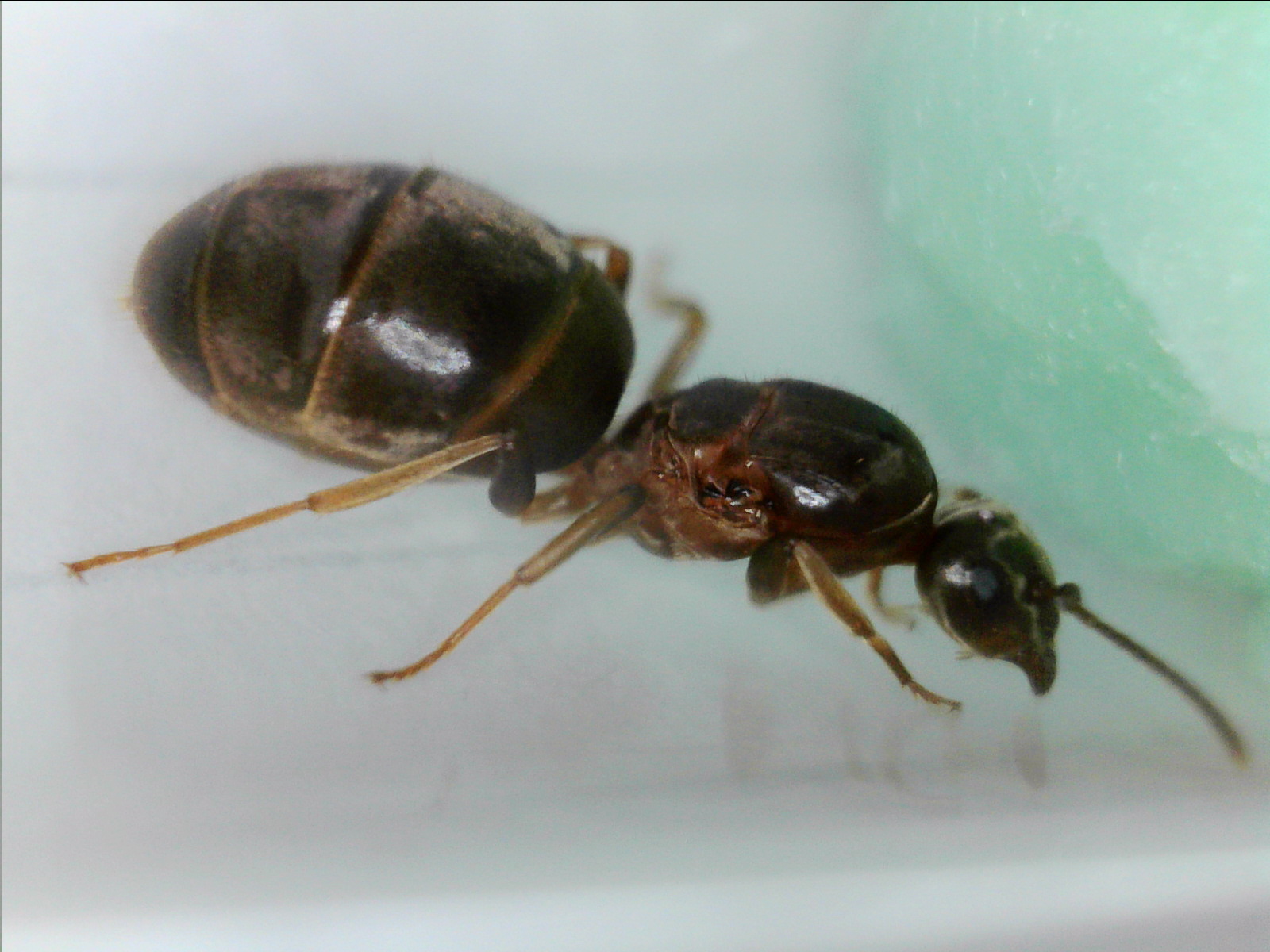 Innanzitutto ha un gastro troppo ristretto, io gli darei qualcosa anche se è sconsigliato, per il resto per me è Lasius e già ho avuto problemi con i generi, ora figuriamoci le specie.