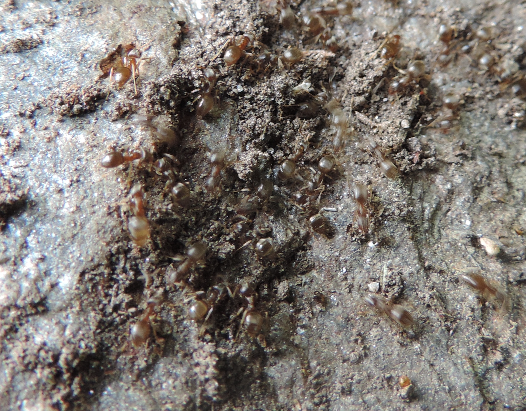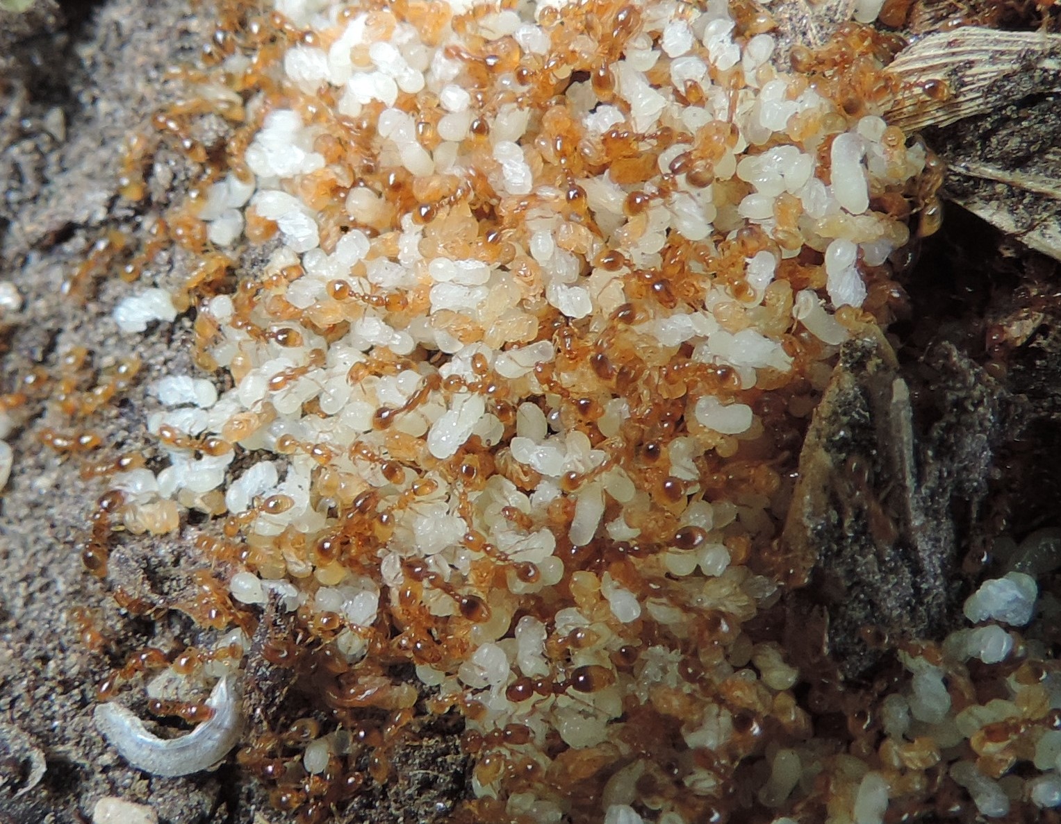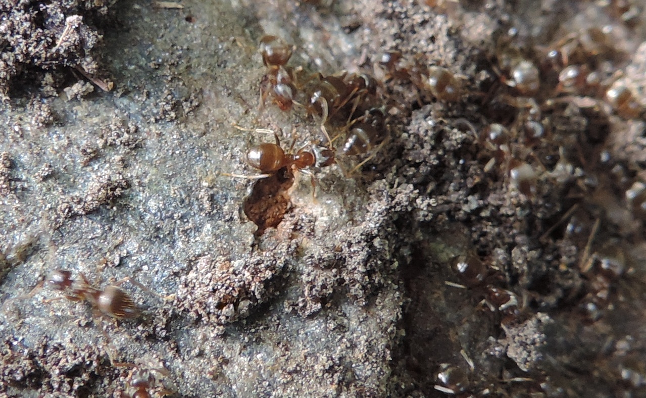 Fotografate a Salbertrand (TO) il 13 agosto del 2017, a circa 1000 metri di quota, sotto ad un sasso. C’erano due colonie praticamente addossate fra loro, una che mi pare di Lasius, l’altra potrebbe essere di Temnothorax?