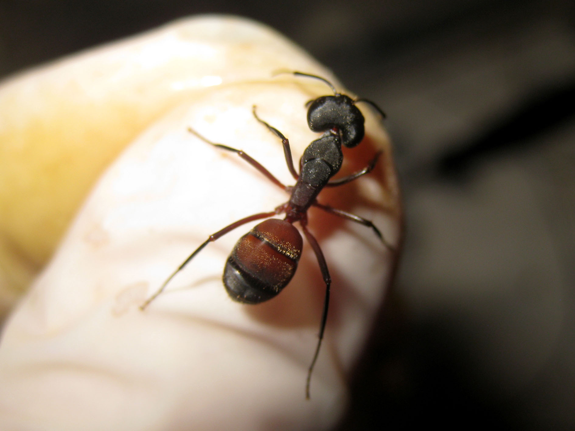 Devo dire che per quanto lunga e delicata, l'operazione è stata più facile che con C. vagus, ad esempio. E il motivo è stato nel modo di mordere e attaccare di questa specie: quando C. vagus morde, è difficile farle lasciare la presa, quindi ogni volta che si prelevano operaie, staccarle dalla mano o dalle pinzette è sempre laborioso. Cruentatus invece morde ferocemente, con forza e rapidamente, ma è altrettanto rapida ad aprire le mandibole e lasciarsi cadere.