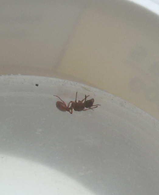 Dopo diverse settimane le regine stanno bene e una ha cominciato a deporre. Ho già intenzione di cederle a Dragonpluvius (già scritto in privato). Posto qui la foto delle regine per essere sicuro siano della stessa specie (una è leggermente più scura). Grazie.
